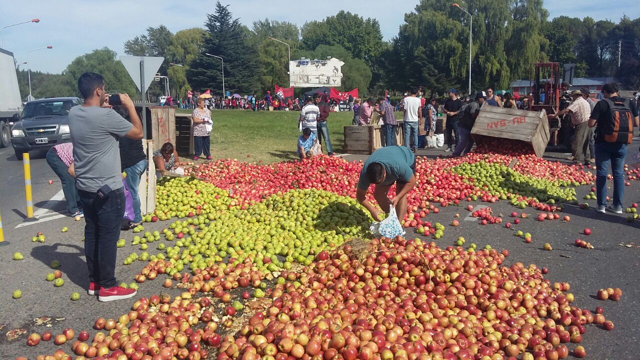 Luego, los productores se trasladaron al frente del municipio, donde también tiraron manzanas sobre la calle, como hicieron esta mañana en la Ruta, apelando a una modalidad de protesta característica del Alto Valle. Informaron que en total repartieron 40 mil kilos de fruta. Lo entregado es el remanente de la cosecha 2017 y parte de la de este año.