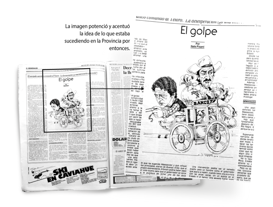 Ilustraciones políticas: La ilustración que apareció el domingo 7 de julio de 1991 en el diario, acompañó la nota política de Italo Pisani y tuvo gran repercusión a nivel nacional.