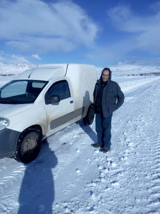 Hace 30 años y nada menos que 5.000.000 de kilómetros que es así para ellos. Y Julio lo sabe mejor que nadie, si hasta en el Cajón del Hualcupen, en esa espectacular ruta provincial 26 que pasa por puestos de arrieros y desemboca en el azul profundo del lago Caviahue custodiado por el volcán Copahue y su fumarola, cuando un inmenso manto blanco cubre el camino espera que las máquinas de Vialidad abran paso a eso de las 9 de la mañana y las sigue despacito detrás, junto a los proveedores de alimentos.