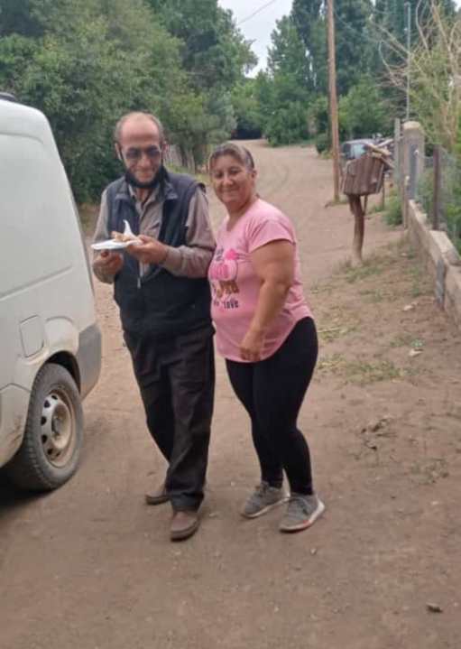 Una de ellas es Rita Jara en El Huecú. Durante la pandemia, camino o pedaleó los 4 kms entre el pueblo y el control policial hasta donde podía llegar Julio con los diarios y los productos adicionales y levanta también pedidos de los parajes cercanos, el ejemplo justo que buscaban Mirta y Julio para despedirse y desear un feliz Día del Trabajador.