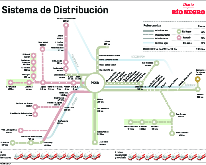 Todas las madrugadas, alrededor de las tres, los ejemplares de Río Negro que partieron desde Roca rumbo al centro y norte de Neuquén llegan a Zapala. Allí los esperan Mirta Villalba y Julio Vacchi para llevarlos a Chos Malal (220 km) con escala en Las Lajas. Y los jueves, sábados y domingos enfilan hacia las montañas rumbo a Loncopué (130 km), Caviahue (180 km) y El Huecú (230 km). No importan el viento, la lluvia o la nieve: el diario tiene que llegar, el lema que comparten los 18 transportistas que cada día recorren 7913 km rumbo a cada rincón de la región.