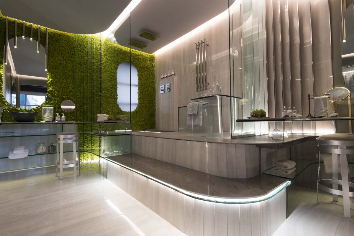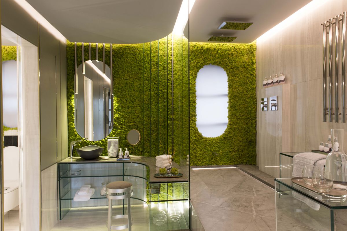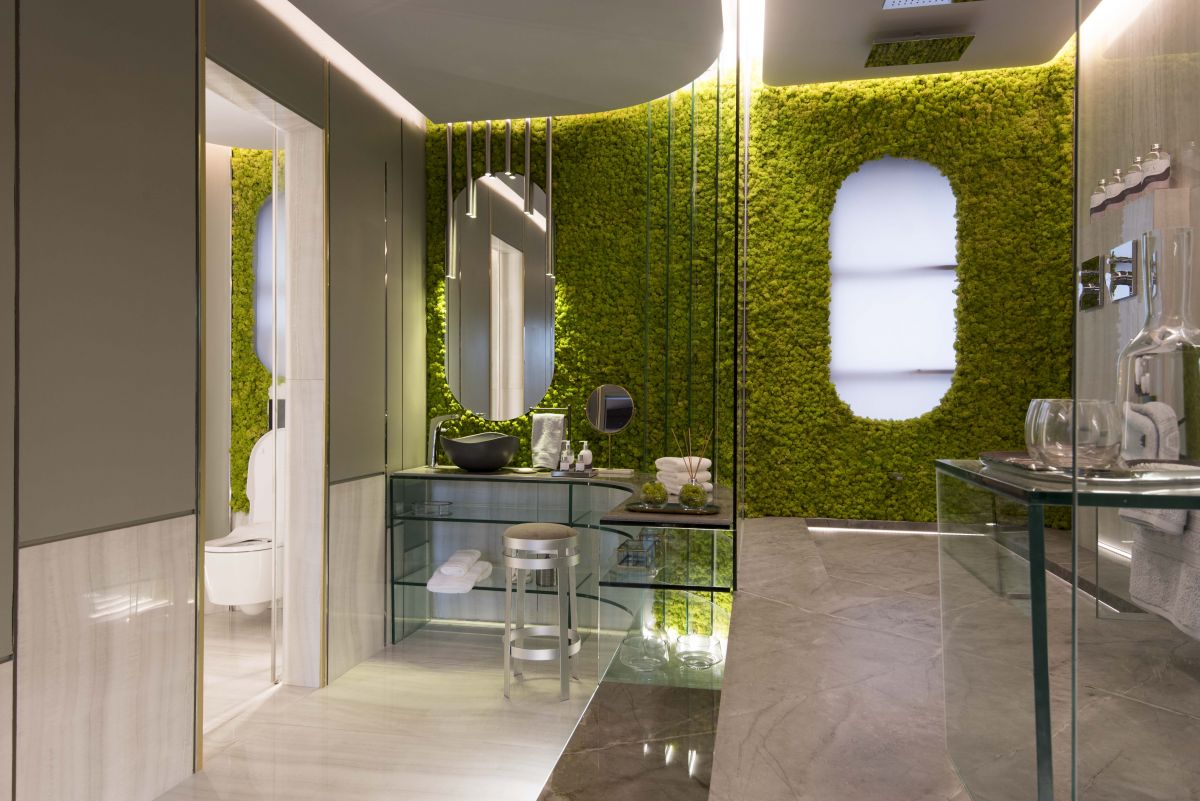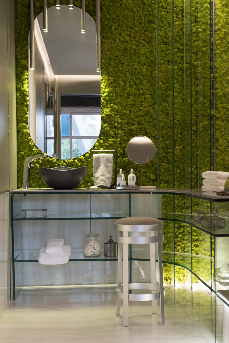 – Se recubrió una pared con liquen estabilizado escandinavo, enfatizado también por el porcelato y el dekton. Una analogía hacia dos de los elementos esenciales: tierra y agua.