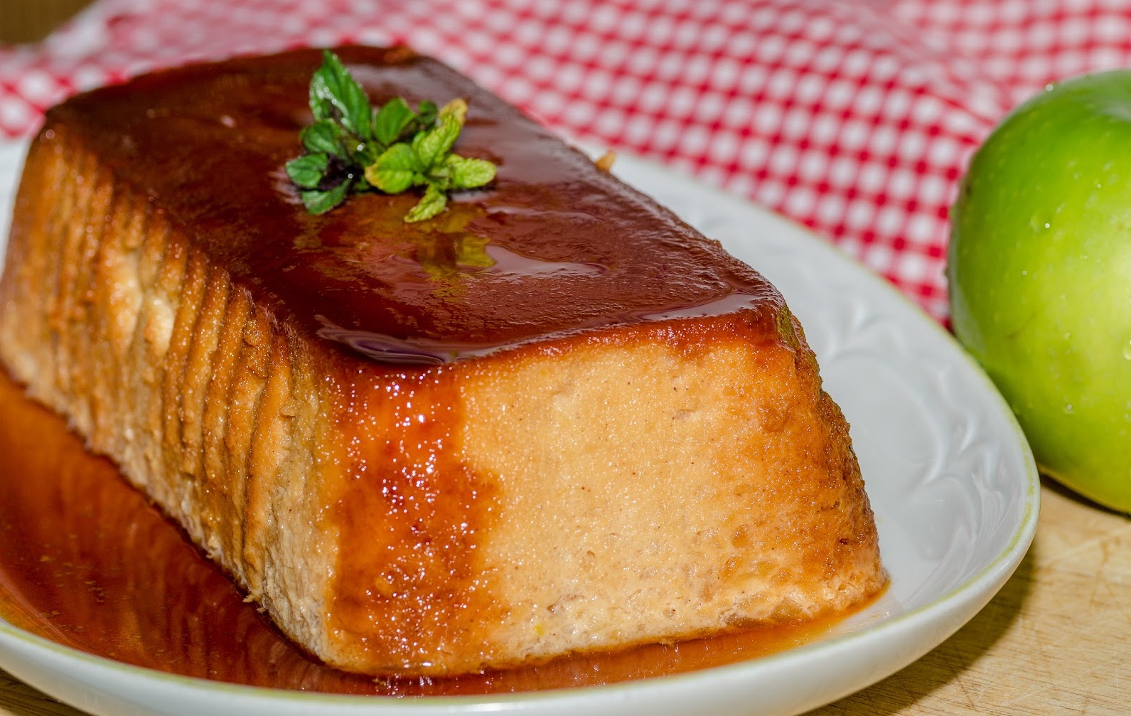 Preparar el caramelo y volcar en el recipiente en que haremos el flan. Desparramar en el fondo y costados de la olla. Rallar las manzanas. Colocar la leche en otro recipiente al fuego y agregar el azúcar. Revolver hasta que se diluya el azúcar y retirar del fuego. Agregar un chorro de esencia de vainilla y las manzanas ralladas. Opcionar, pasas de uvas. Batir los huevos aparte y unir toda la preparación. Colocar en el recipiente y llevar al horno a fuego mínimo unos 40 minutos aproximadamente. Desmoldar cuando se enfríe.