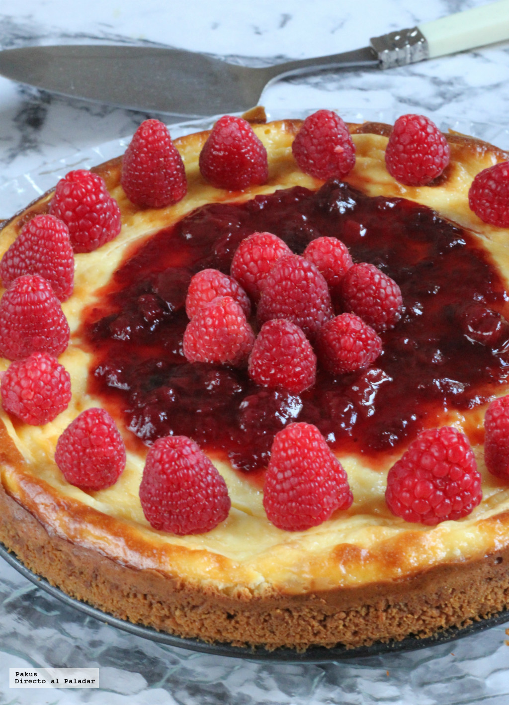 Decorar la tarta cuando ya esté fría con unas cucharadas de mermelada de frutilla, frambuesa o arándanos. Si tiene frutos rojos frizados, agregarlos por encima para sumar color, textura y más sabor.