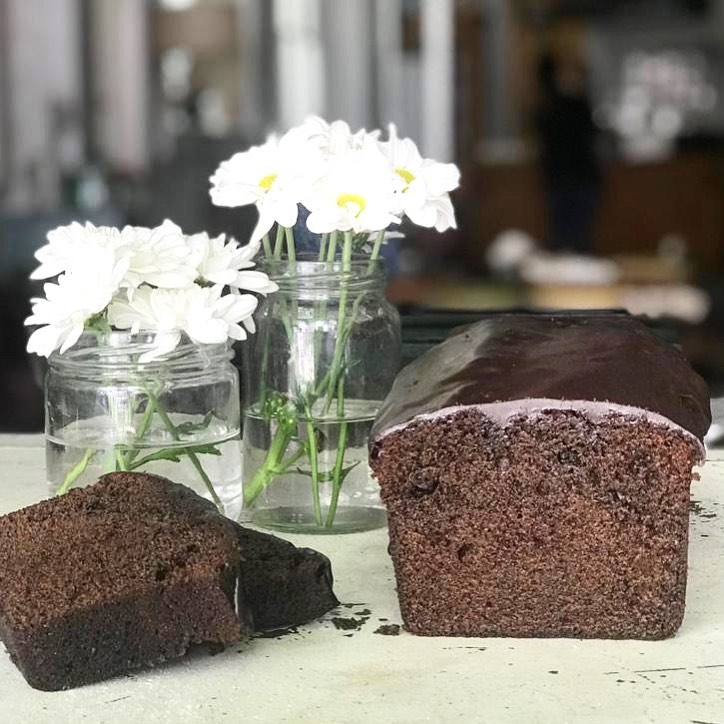 Arriba lo decoré con ganache de choclate negro para que sea súper goloso. Pero lo podés obviar. O hacer un baño de chocolate desparejo o solo azúcar impalpable y ya está. Esta idea de budín es genial para llevar en la ruta, para llevar a una casa, para tener el fin de semana en nuestra casa… es algo hecho por vos, casero y rico”.
