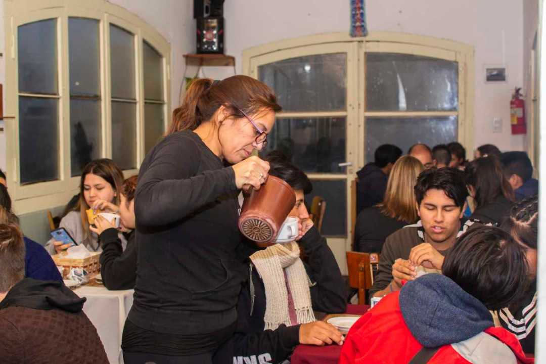 “Otro par de años nos llevó poder emprender en esta cafetería que hoy es el sustento más importante con el que cuenta la cooperativa y que genera trabajo a nuestras compañeras. Nos permite seguir proyectando sobre todo la adquisición de herramientas, en la proyección publicitaria y de otras propuestas turísticas. Hace dos años les propusimos a nuestros vecinos/as un lugar para venir en familia, con amigos, sin distinción de edades: este cafecito. Que vengan es algo que nos genera orgullo”. El servicio gastronómico que ofrecen aquí también lo hacen para el viaje en la Trochita.