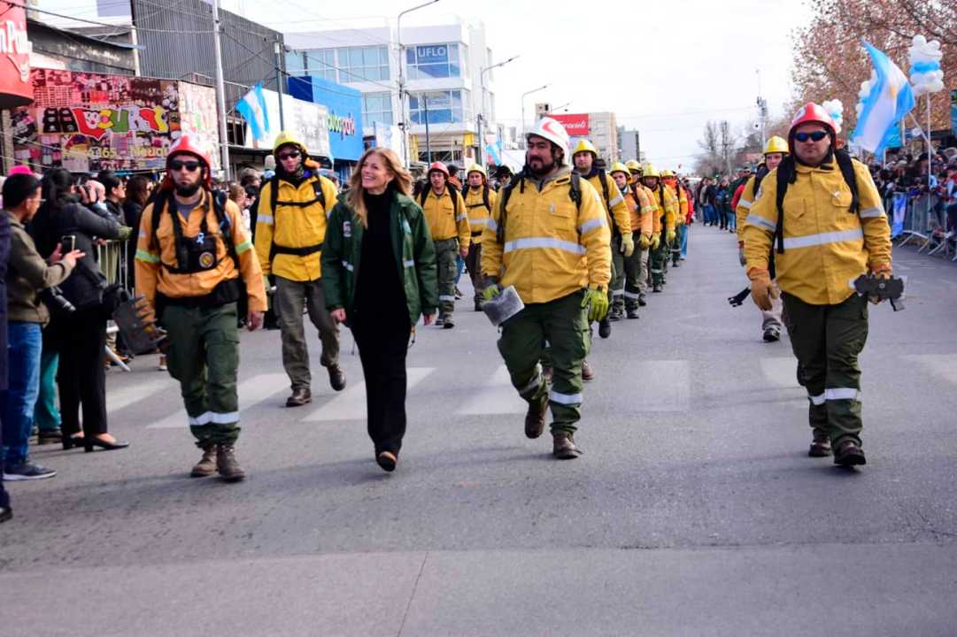 A la altura del monumento a los Caídos de Malvinas, se montó un palco central donde se ubicaron las autoridades municipales y provinciales, encabezadas por el intendente capitalino Mariano Gaido y el gobernador Rolando Figueroa, recientemente llegado de Tucumán donde participó del Pacto de Mayo convocado por el presidente Javier Milei.