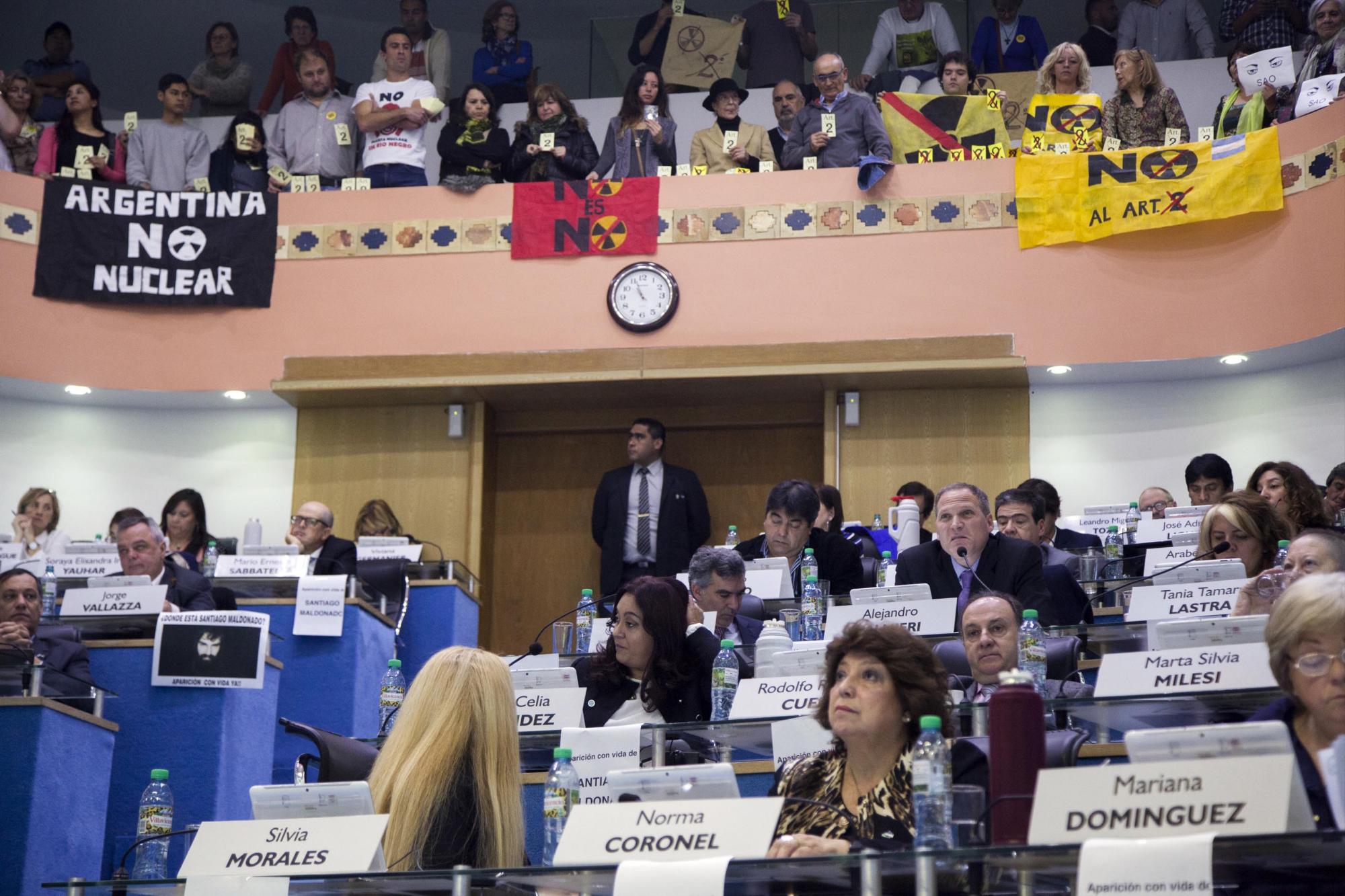 El oficialismo insistió que ese artículo respondía a proteger al Invap y sus trabajadores. Pero, la oposición insistió que ese punto era una construcción porque ese empresa provincial -que se sepa- no construye centrales nucleares.