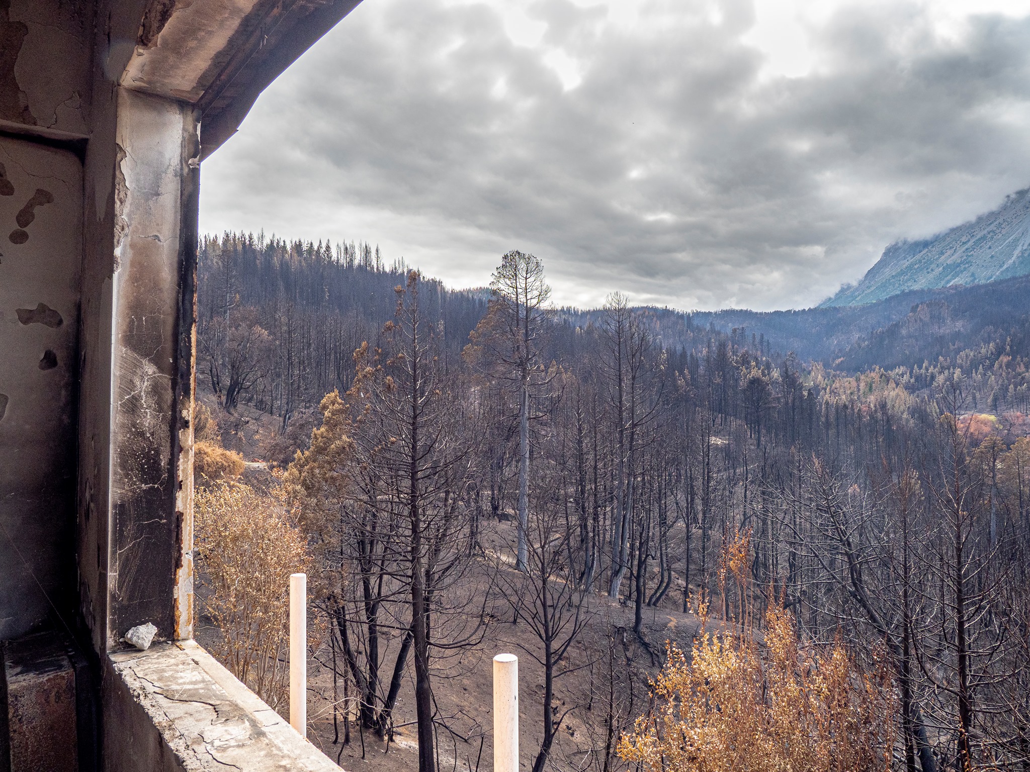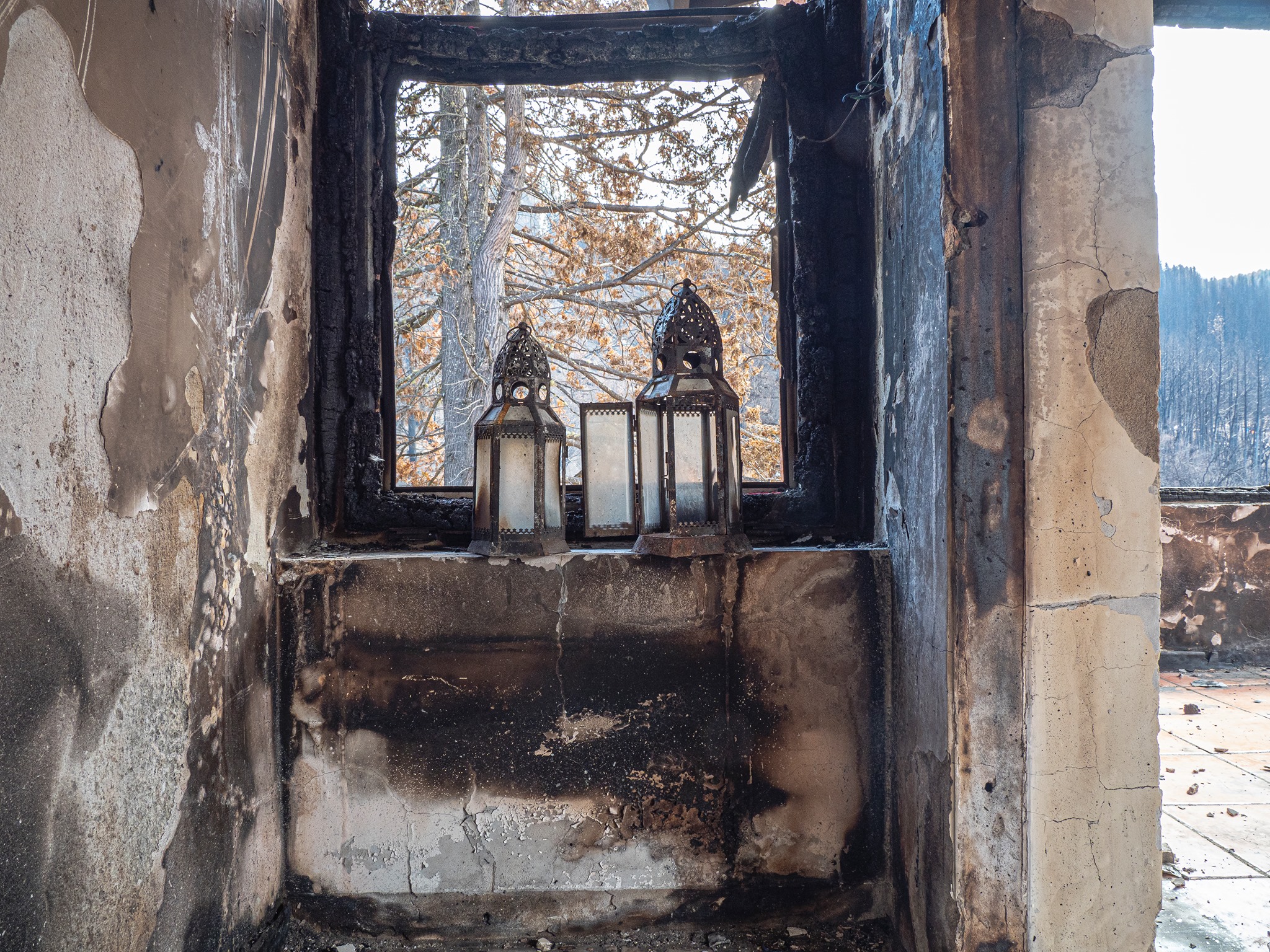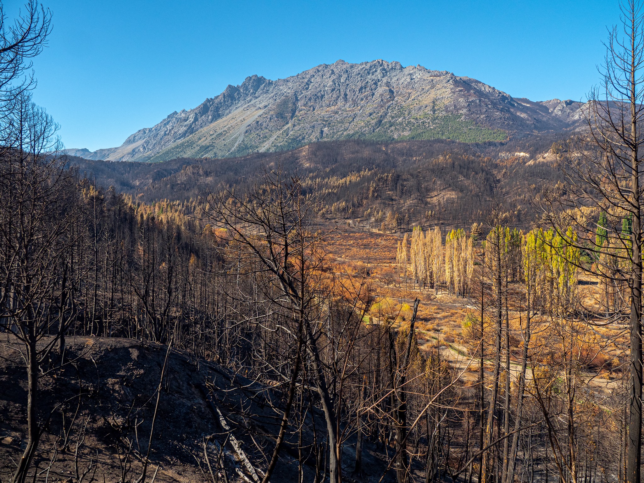 Al noroeste de Chubut, en ese paraíso de la cordillera arrasado por las llamas, Sandra y sus hijas duermen en lo que quedó de su casa,entre paredes ennegrecidas por el humo y árboles carbonizados, sin agua ni electricidad. Texto y fotos de Ricardo Kleine Samson.