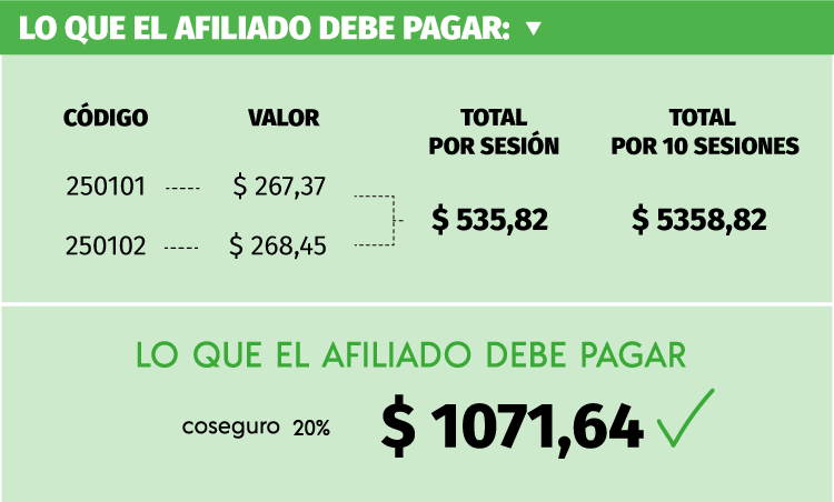 De esta manera, 10 sesiones tendrían un costo de 5.358,20 pesos y el coseguro del 20% debería ser de 1.071,64 pesos.