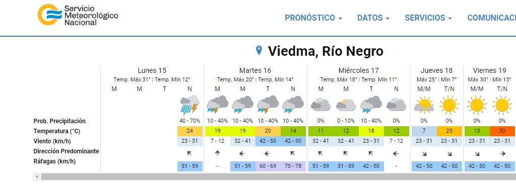 Para este lunes se esperan tormentas fuertes para la capital rionegrina, sobre todo hacia la noche que persistirán hasta este miércoles. La previsión de los valores de las precipitaciones rondará entre los 10 y 20 milímetros, aunque en algunas zonas puede ser mayor.