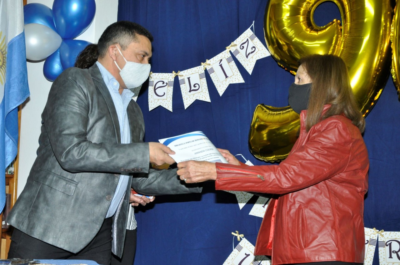 “Amanda es una institución dentro de la institución. Es una persona que hizo mucho por nuestra biblioteca y a la que apreciamos mucho. La vamos a extrañar” señala José María Ramallo, quien preside la Comisión Directiva de la Biblioteca Popular “Bernardino Rivadavia” de Jacobacci. El pasado 10 de mayo, la institución cumplió 90 años de vida. Para celebrarlo se realizó un emotivo acto que sirvió también para homenajear a Amanda Cooper: después de más 52 años trabajando como bibliotecaria, inicio los trámites de jubilación.