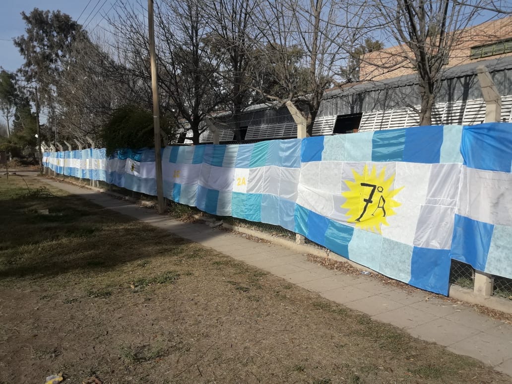 La bandera argentina se logró con la ayuda de los alumnos y los docentes del establecimiento.
