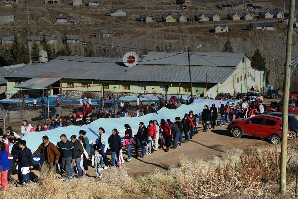 Tiene 120 metros y fue confeccionada en Andacollo, donde fue llevada con orgullo por niños y adultos. En Taquimilán y Chos Malal también tuvieron festejo.