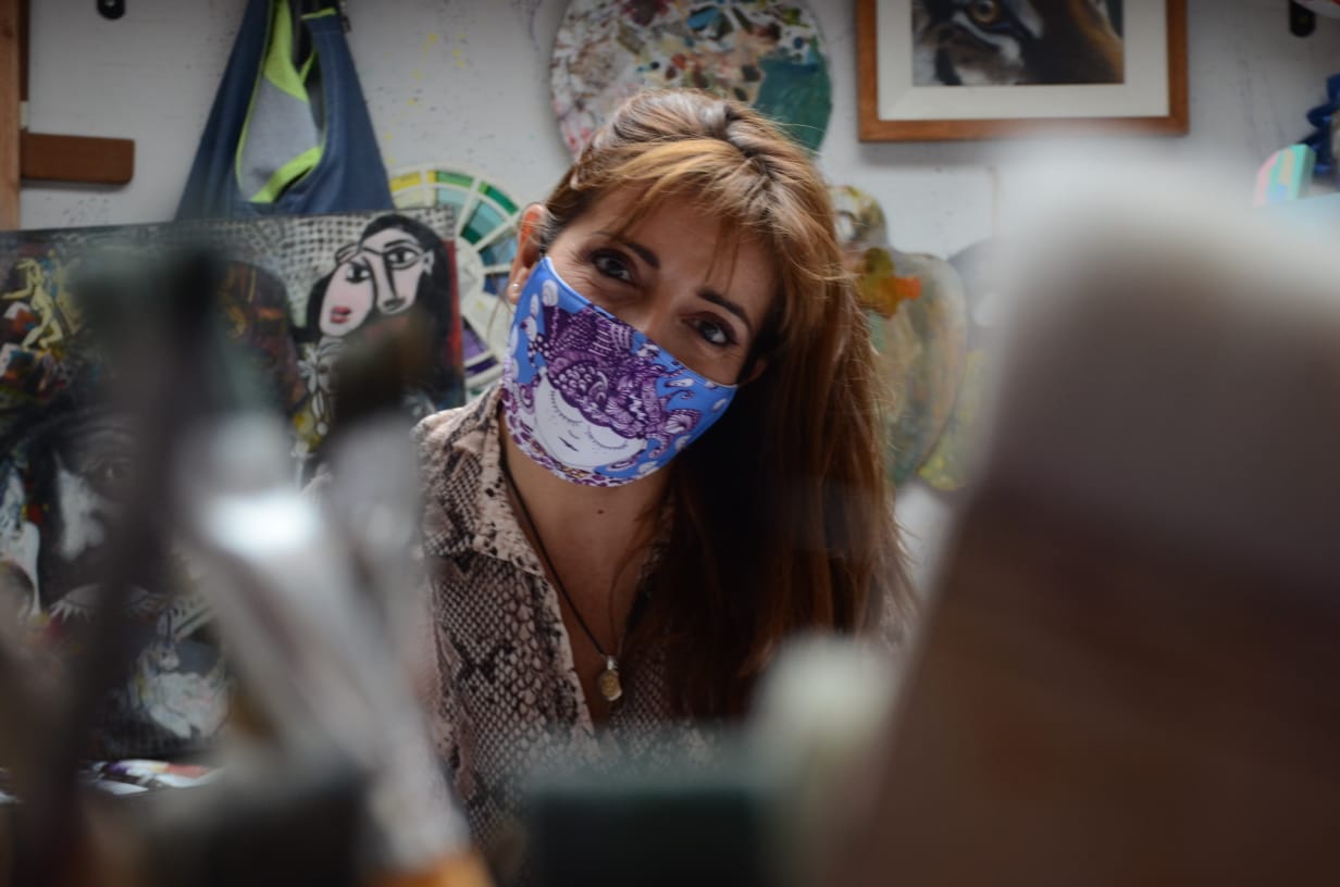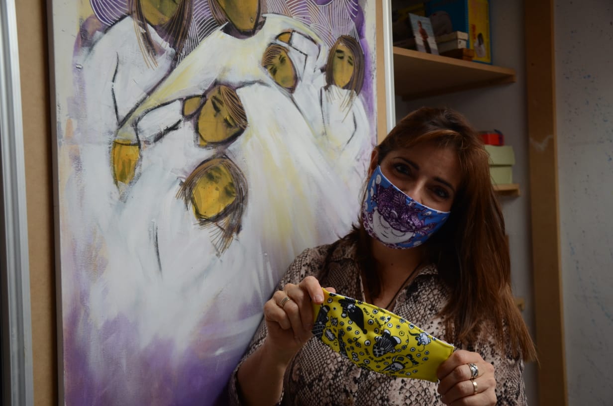 La artista plástica neuquina transformó los tapabocas de uso obligatorio en un lienzo, los llenó de arte y son actualmente el principal sustento de una fundación que se dedica a ayudar a los más necesitados durante la vigente cuarentena por la pandemia de coronavirus.