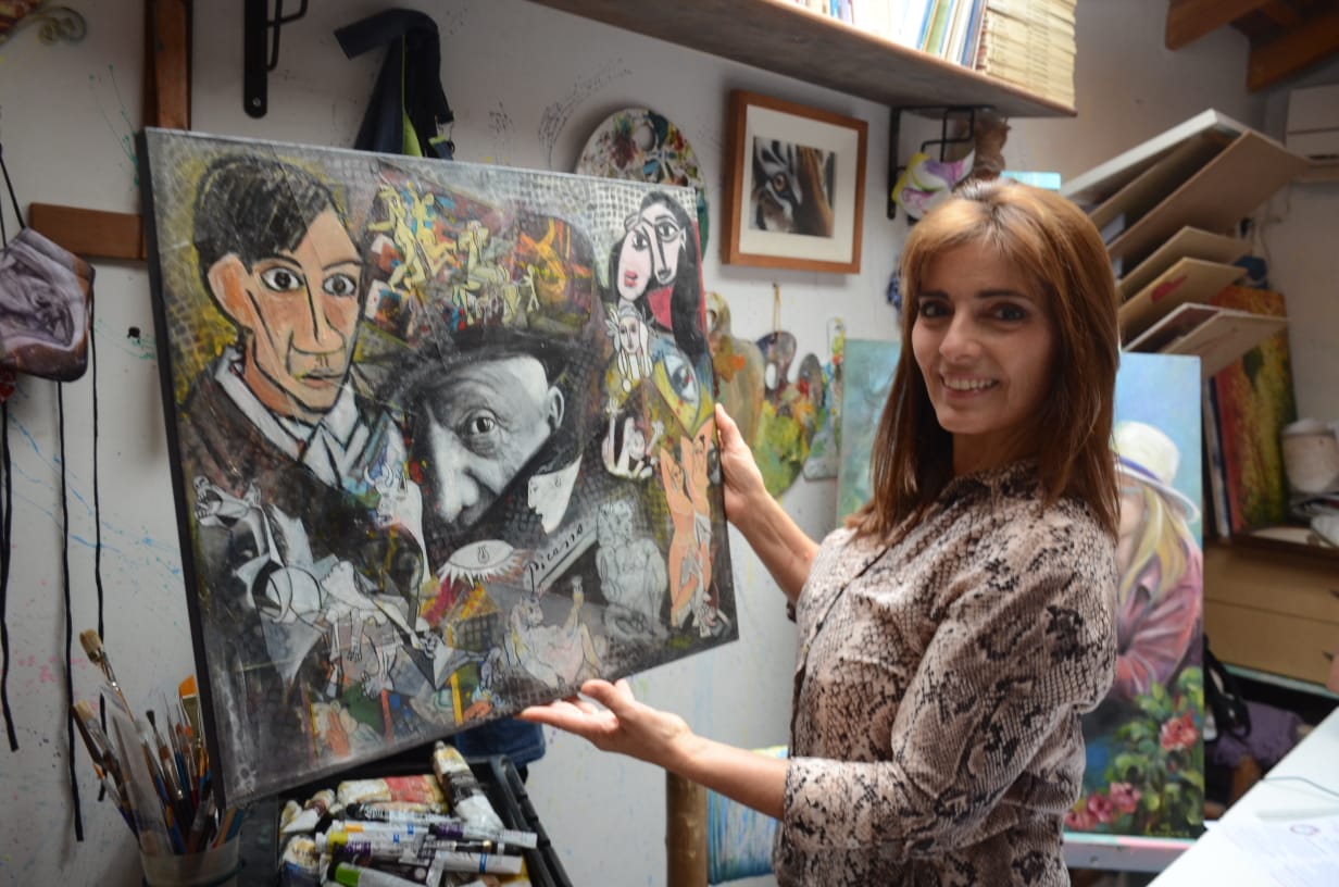 Su camino en el arte comenzó en 2008 y medio de casualidad. “Estaba muy pasada de vuelta y el médico me sugiere que haga algo más relajante. Entonces comienzo a estudiar arte en una academia de arte de Neuquén”, contó ella.