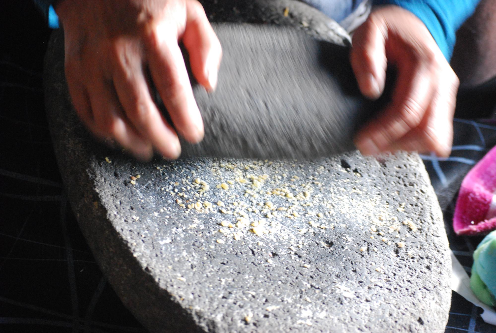 Harina de piñón: base de la panificación de la comunidad, requiere una molienda más intensa, con piedra de moler, previamente debe ser hervido y secado.