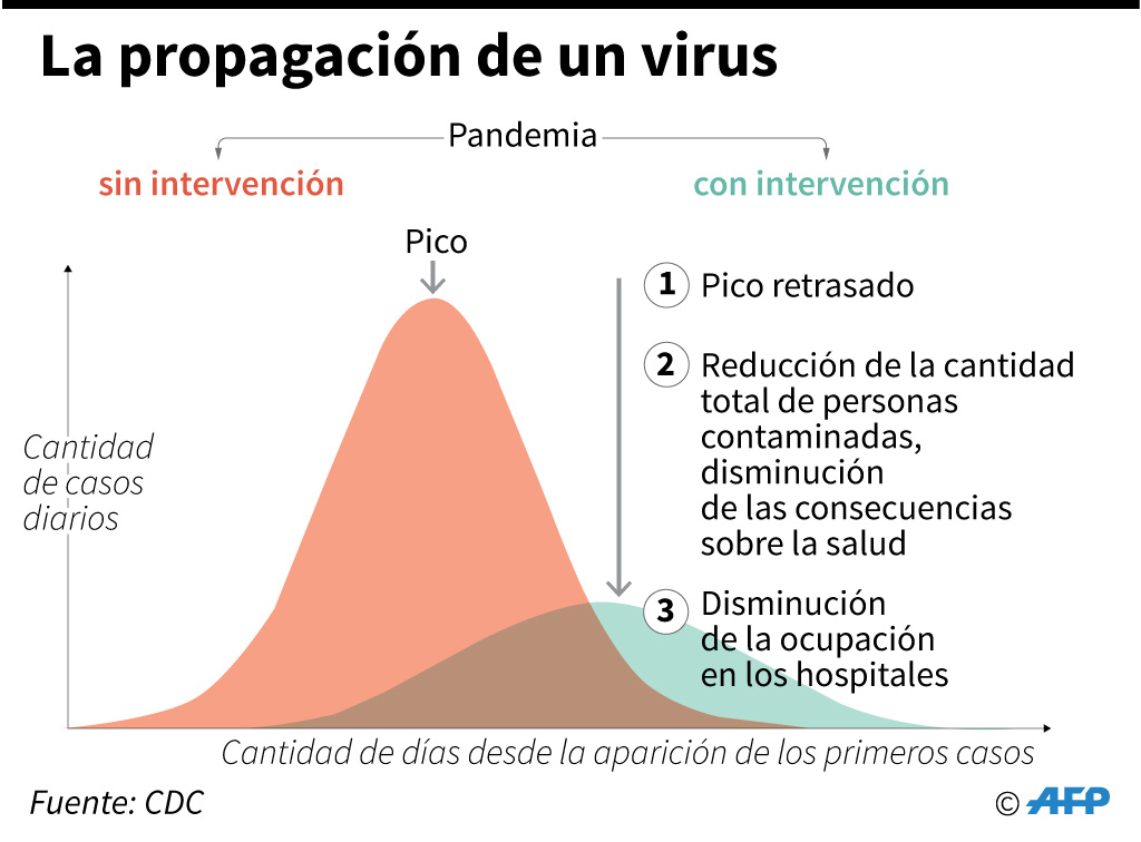 Contamos con el beneficio de la experiencia de otros países. Ya se sabe que es un virus de baja letalidad, pero mucho más contagioso y peligroso que la gripe, por la falta de vacunas y de defensas entre la población. Desatado, podría hacer estragos en personas vulnerables y colapsar los sistemas de salud. Los expertos señalan que es clave ganar tiempo para que la curva de infección, en vez de ser un pico agudo de muchos infectados en pocos días, se aplane hacia una “meseta” extendida en varias semanas, que permita una respuesta sanitaria adecuada.