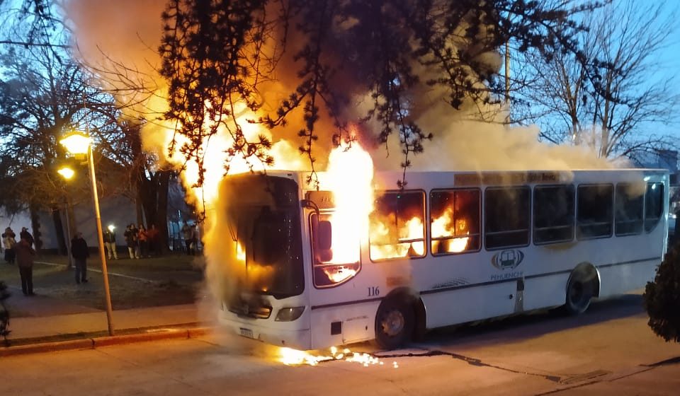 El fuego consumió completamente el rodado, que es la unidad 116 de la empresa Pehuenche y cubre el ramal 3.
