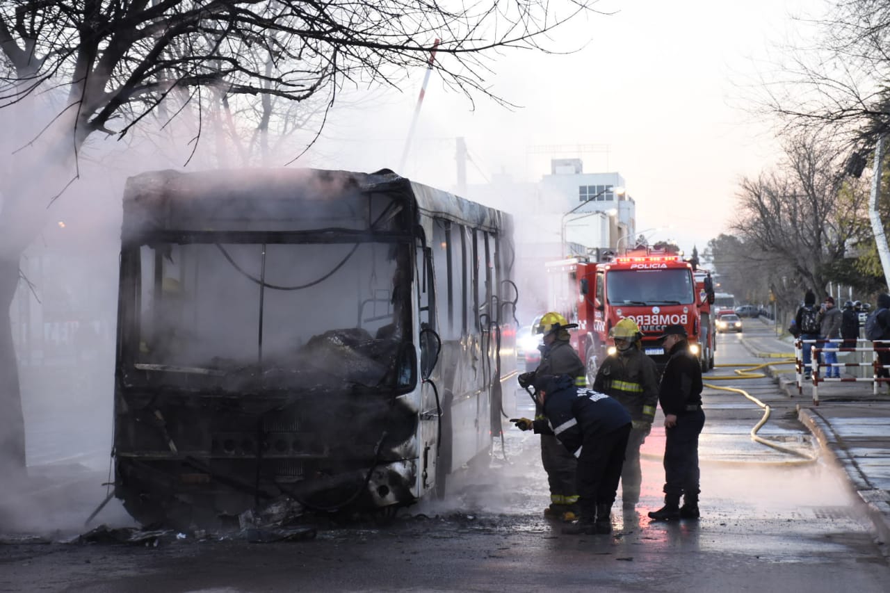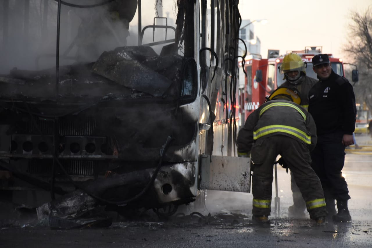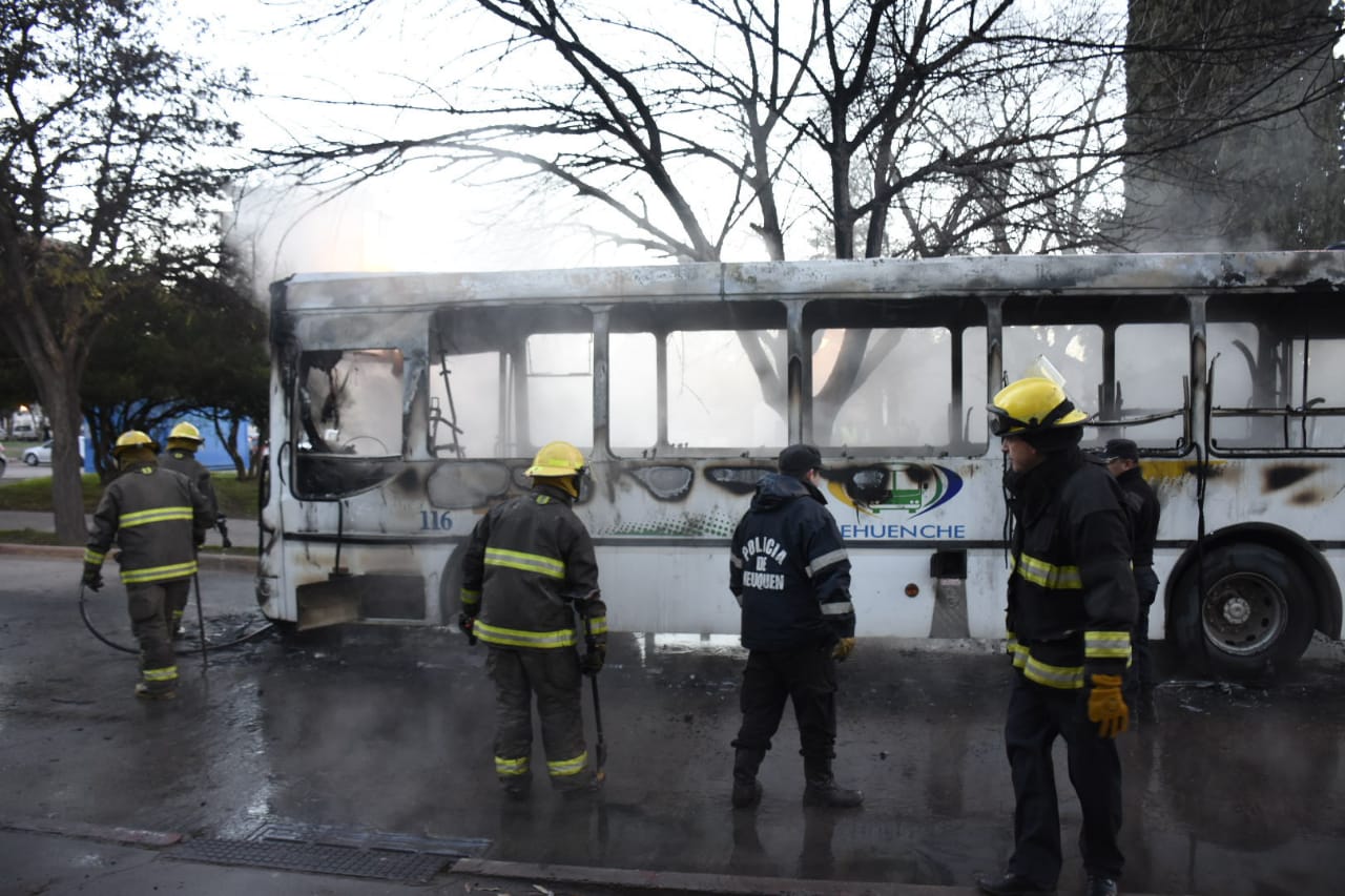 Un colectivo se prendió fuego en el centro de Neuquén, sobre la avenida Argentina, a la altura de las vías. El hecho se conoció a las 8.30 y según las pericias de los bomberos fue accidental, según explicó el jefe Bonifacio Calfuqueo. Los daños materiales fueron totales.
