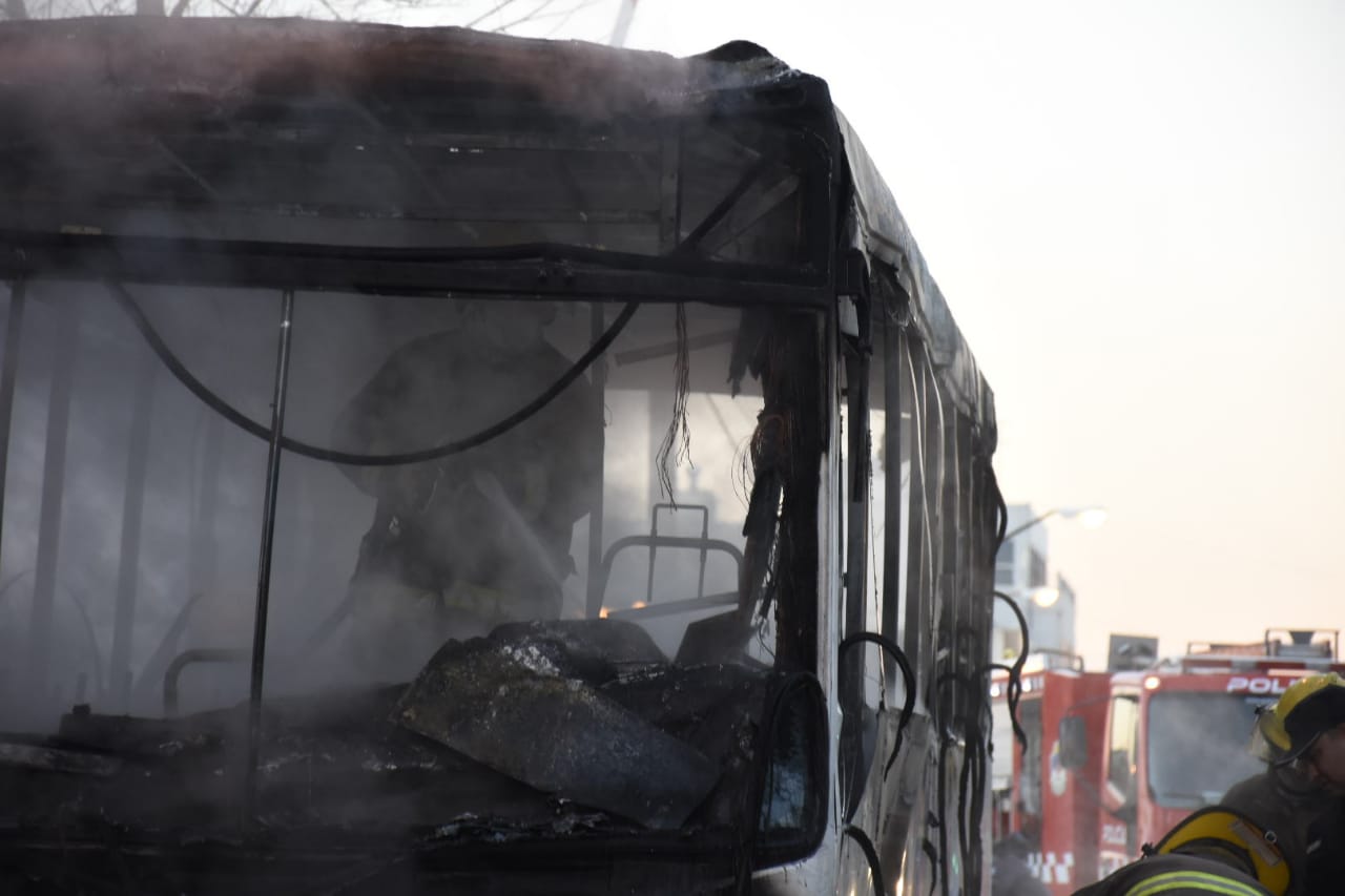 El fuego consumió completamente el rodado, que es la unidad 116 de la empresa Pehuenche y cubre el ramal 3.