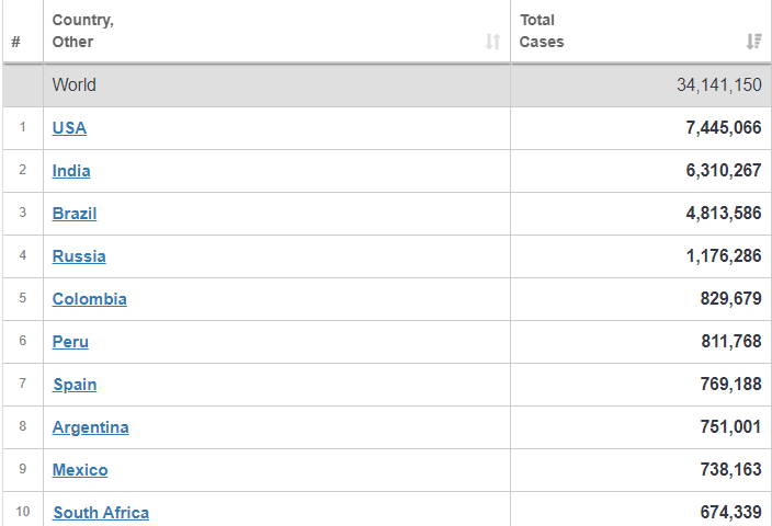 Con los 14.392 nuevos casos de coronavirus reportados en el parte de hoy, Argentina sigue avanzando en el ránking de países con más contagios.