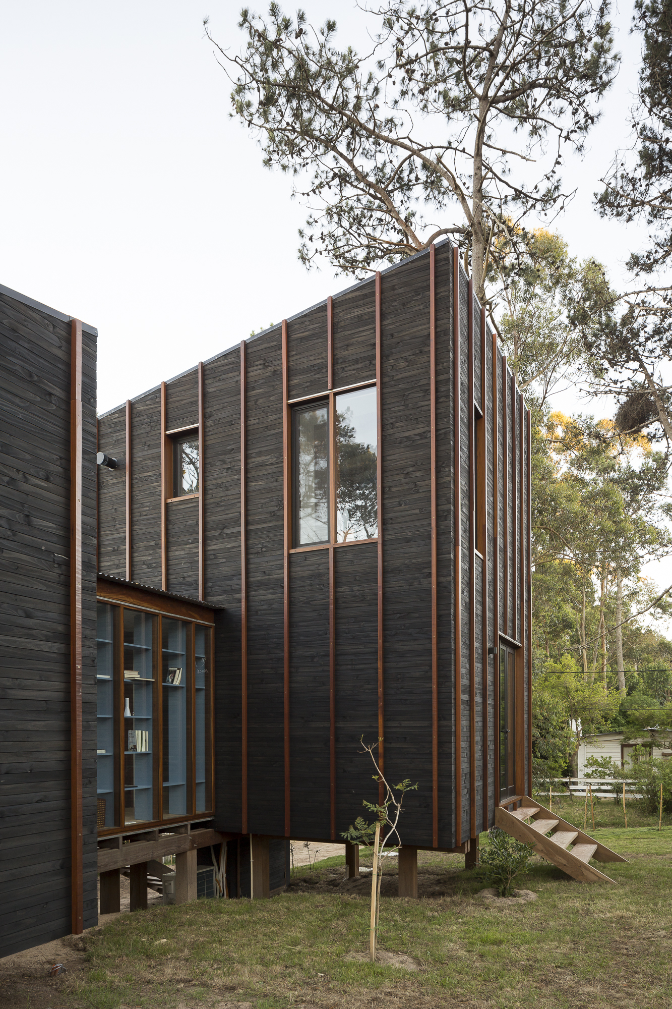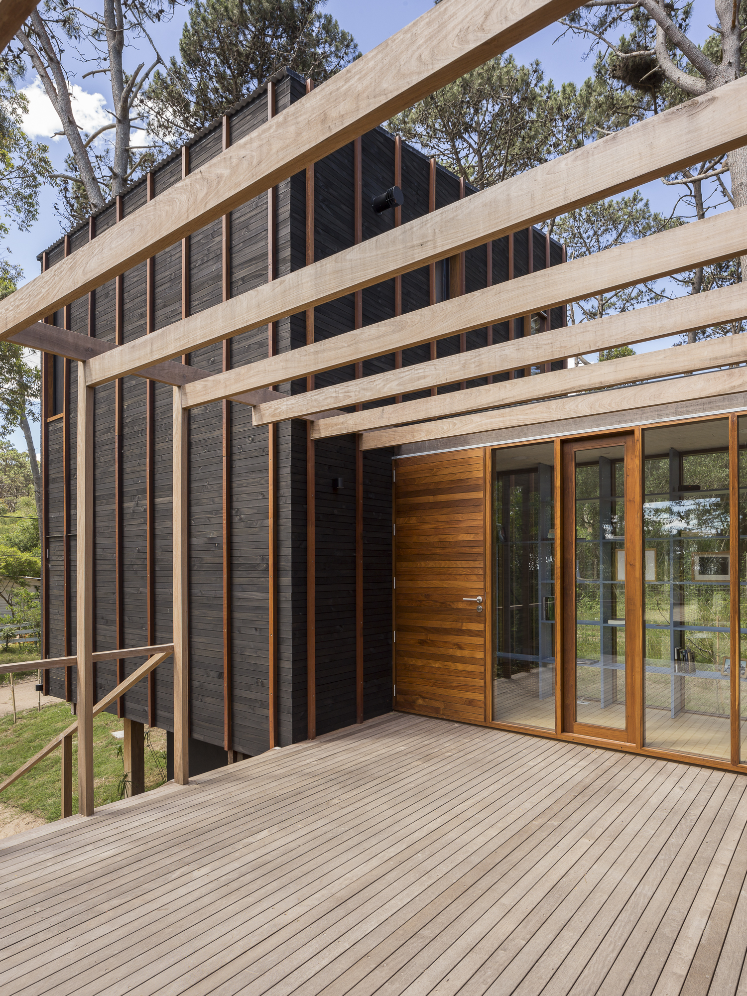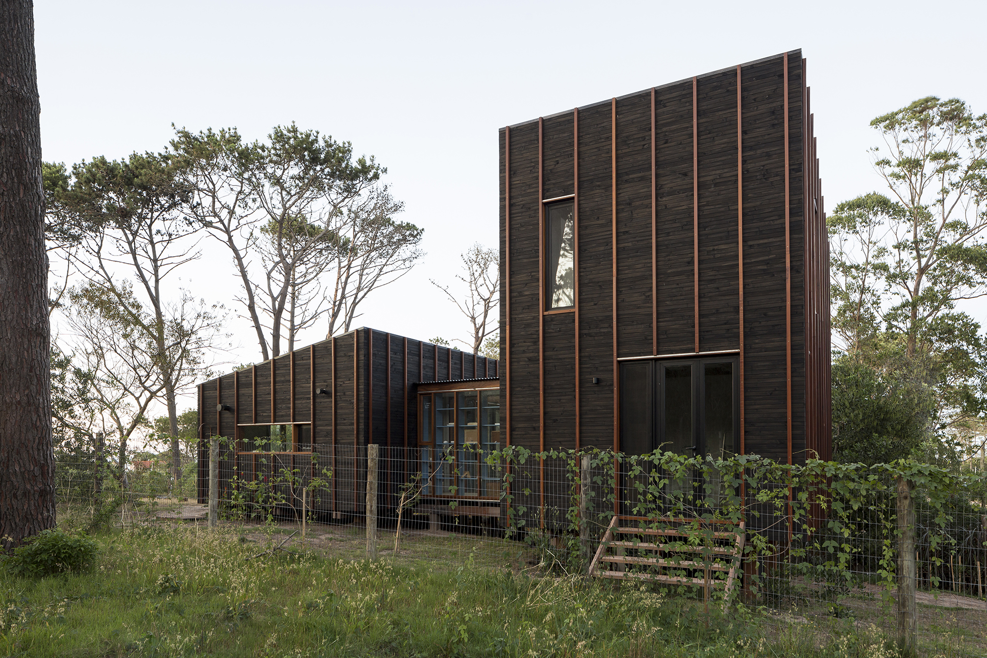 Ubicado en el balneario La Juanita, en un enclave de bosque cercano a la Laguna de Jose Ignacio, en Punta del Este, Uruguay, el solar donde se implanta la casa presenta un desnivel pronunciado que supone una diferencia de hasta dos metros y medio entre el frente sobre la calle y el fondo.