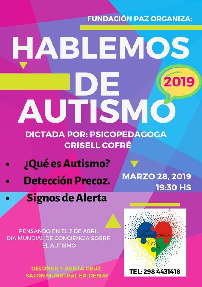 En el marco del día de la concienciación sobre el autismo, que se lleva adelante cada 2 de abril, desde la Fundación Paz de Roca se propuso una agenda de charlas abiertas a la comunidad en general.