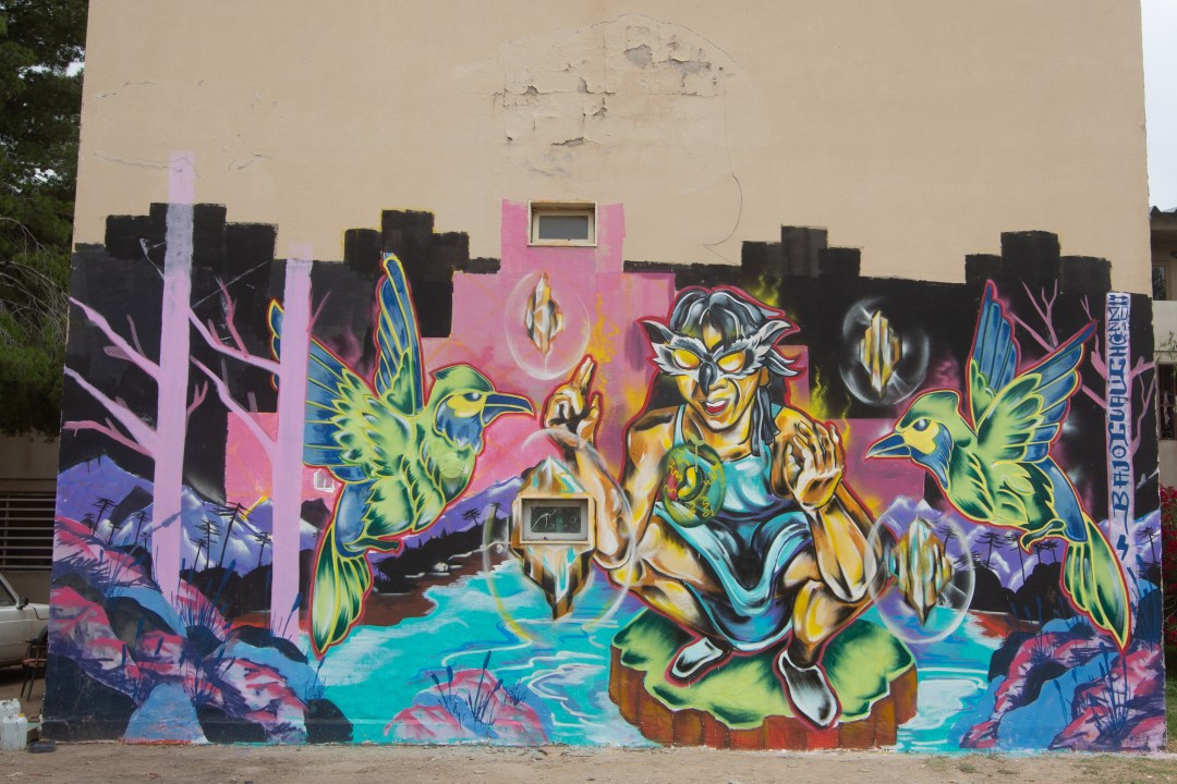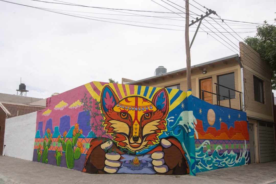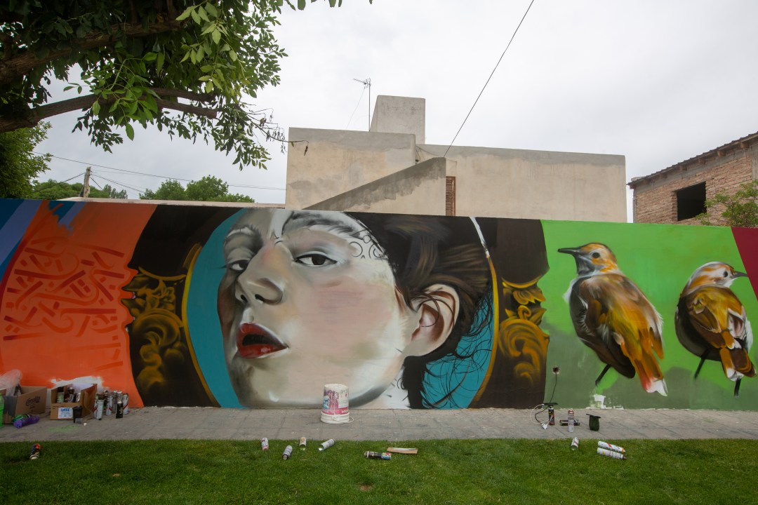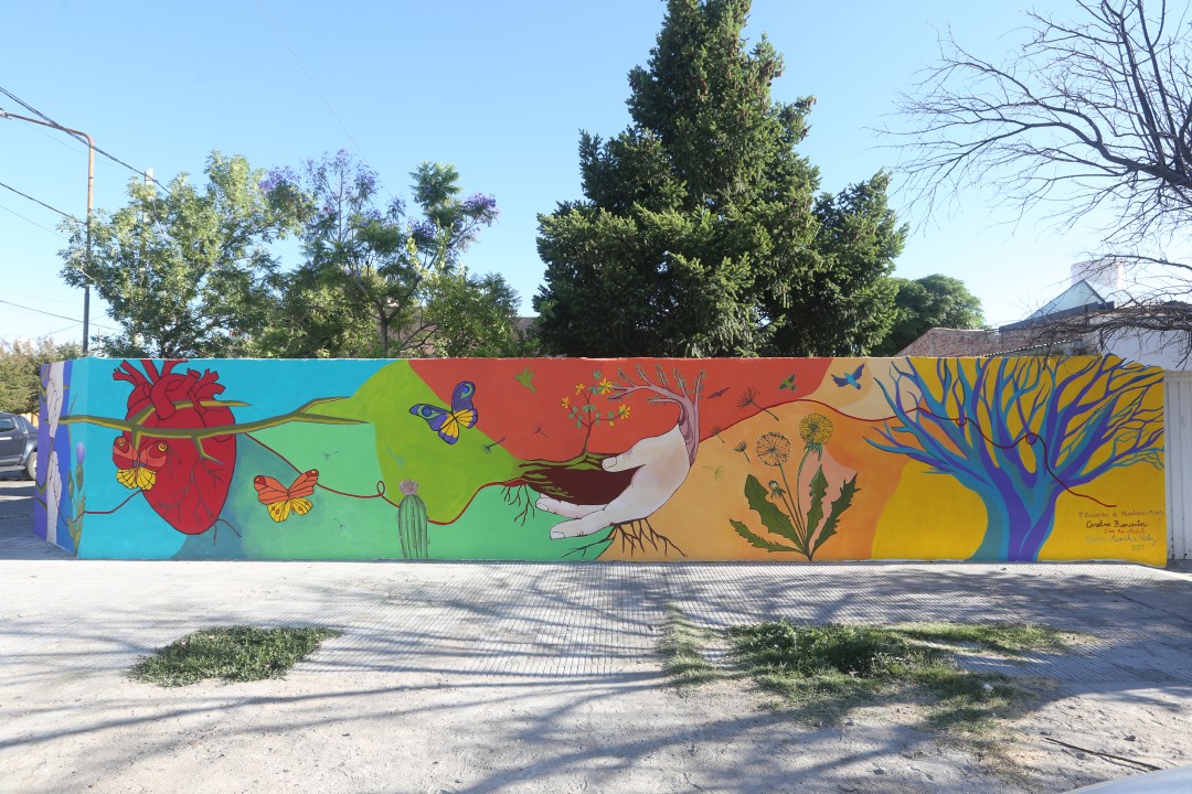 Fueron 15 las paredes que se intervinieron en diversos sitios de la ciudad, una movida que comenzó hace algunos días pero que tiene un antecedente un poco más lejano: “Hace mucho que veníamos viendo a muralistas pintando en distintas partes, llevando adelante obras magníficas. Se nos ocurrió desde la Dirección de Cultura hacerles la propuesta de realizar, en conjunto, un Encuentro de Muralistas, con nuestra estructura y política de gestión cultural. Intervenir la vía pública con obras de arte. De hecho, el primero de estos encuentros ocurrió en 2012 con el Chelo Candia, en el Anfiteatro del Canalito, con 14 murales de fibrofacil en las que se plasmaron obras de arte que luego se sortearon entre zooms de escuelas primarias y secundarias”, comentó La Sala.