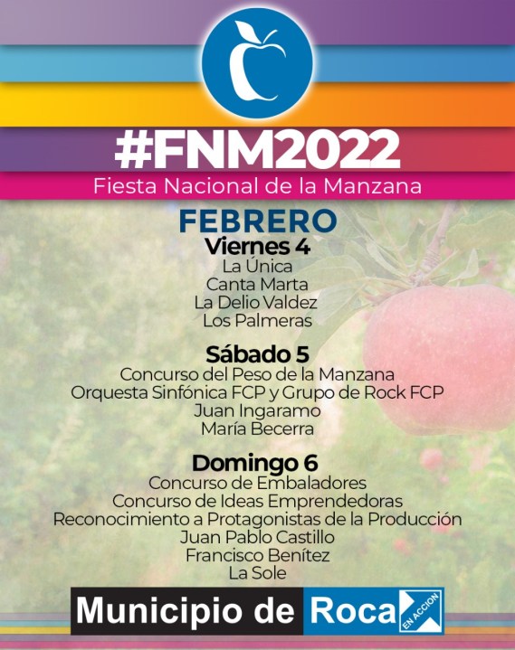 La edición 2022 de la Fiesta Nacional de la Manzana ya tiene grilla de artistas para el escenario mayor. En esta ocasión abarcará diferentes géneros incluyendo rock, pop, trap, cumbia y folklore, con figuras y grupos de renombre nacional y regional.