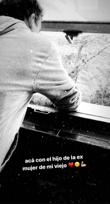 «Acá con el hijo de la ex mujer de mi viejo» bromeó Bambi Moreno Charpentier, quien de esta manera llevó un poco de tranquilidad a los fanáticos del músico a través de Instagram.