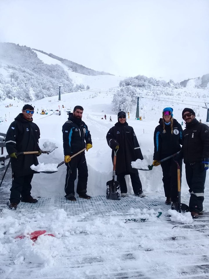 El equipo de Pisteros y Patrulleros continúa trabajando en el acondicionamiento del sector superior de la montaña, abocado a garantizar la seguridad en las pistas, en virtud de la gran cantidad de nieve acumulada.