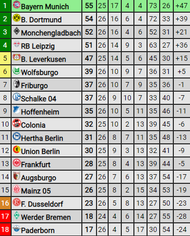 En el balance deportivo, hubo mayoría de resultados lógicos, porque los perseguidores del líder impusieron su jerarquía individual y colectiva. Es el caso de Borussia Dortmund (54), que con su victoria 4 a 0 sobre Schalke (37) quedó a un punto de lo más alto.