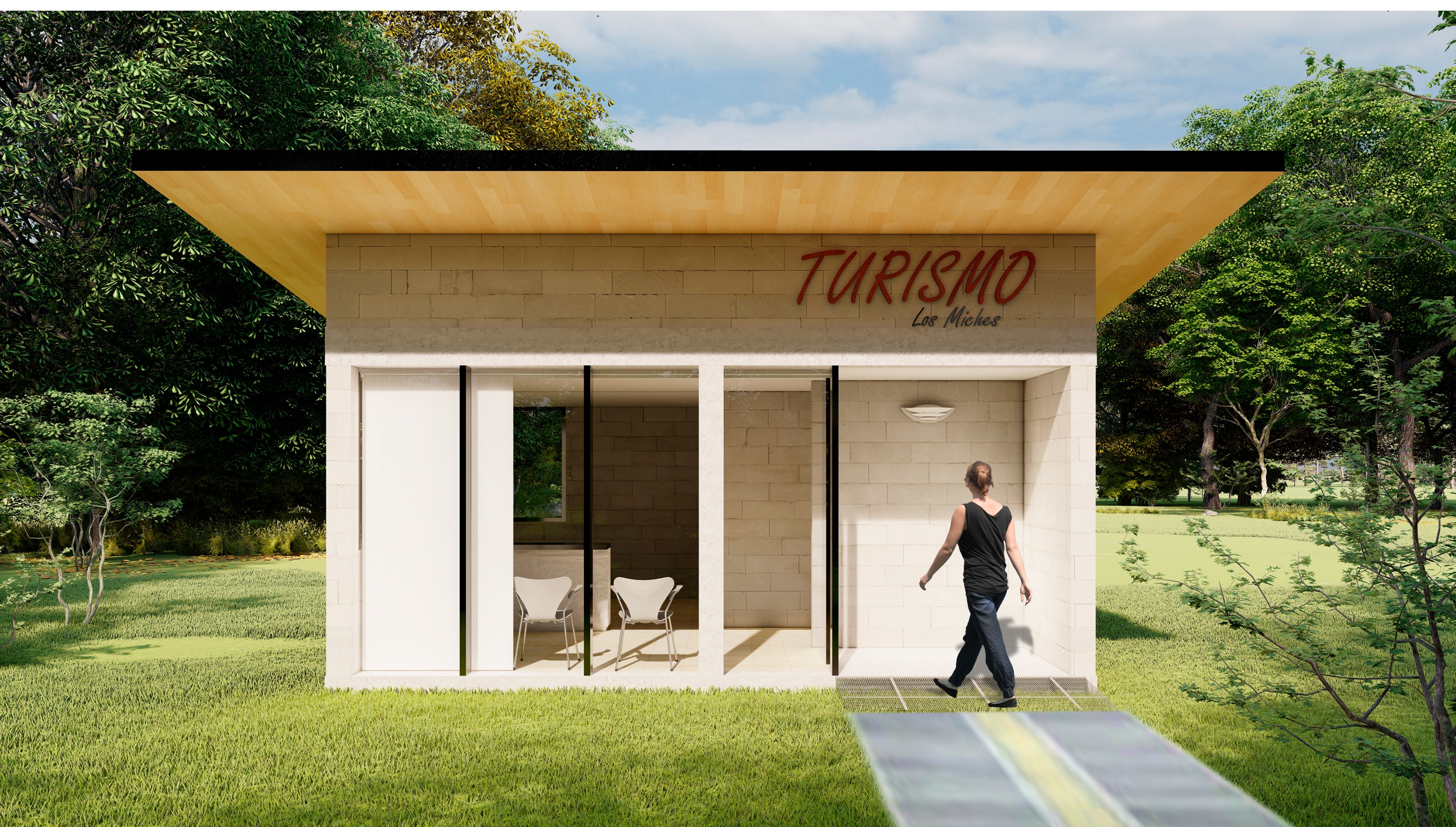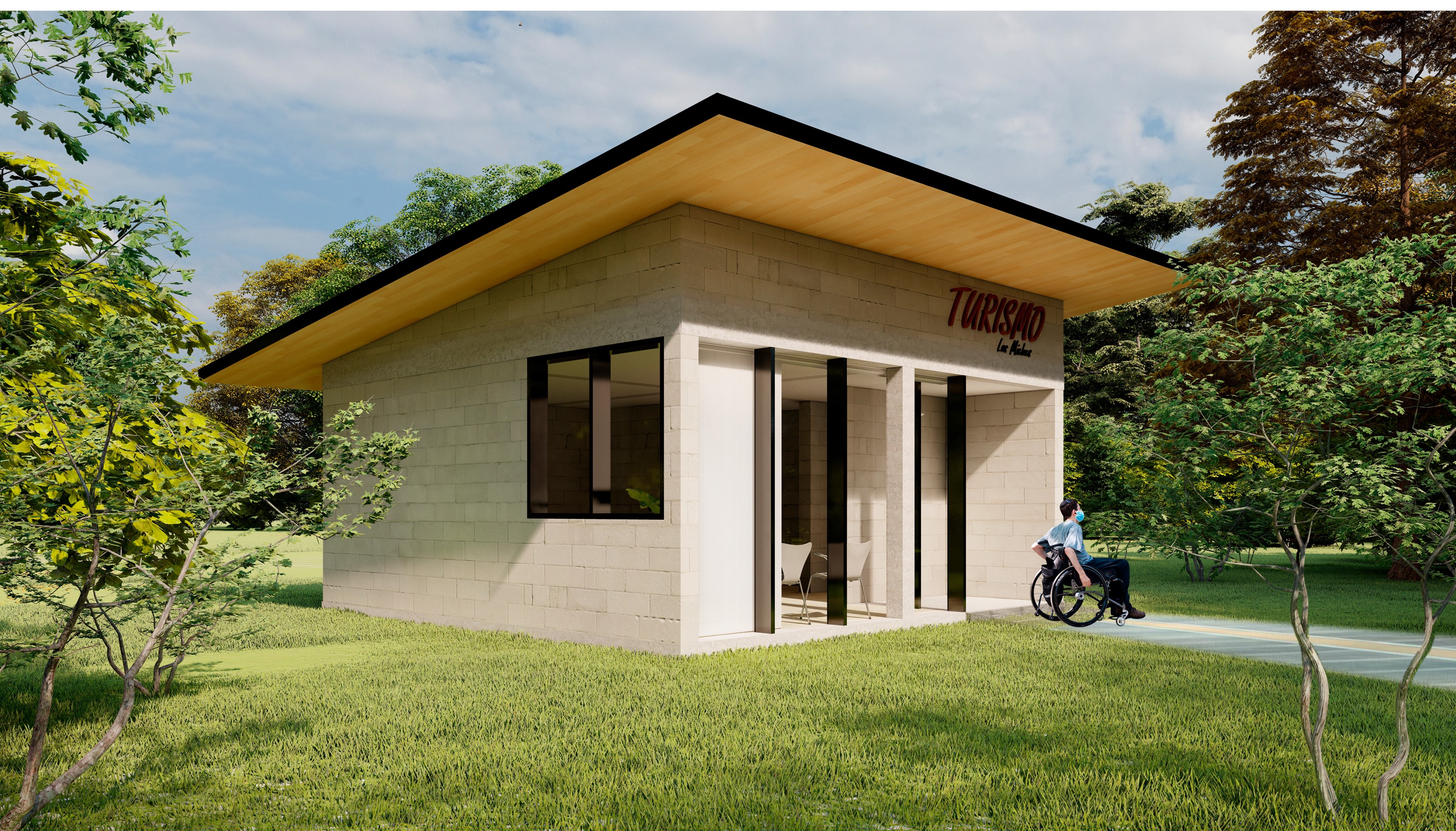 El anteproyecto de Oficina de Turismo que COPADE diseñó para Los Miches consiste en una oficina de 36m2 diseñada con lógica de accesibilidad universal, sustentabilidad ambiental y puesta en valor del paisaje local.
