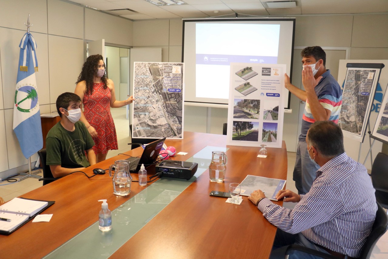 Días atrás, cuando autoridades de COPADE entregaron al intendente de Centenario, Javier Bertoldi, el anteproyecto de urbanismo táctico “Parque Lineal Ruta 7”, que fue realizado por pedido delgobierno municipal.
