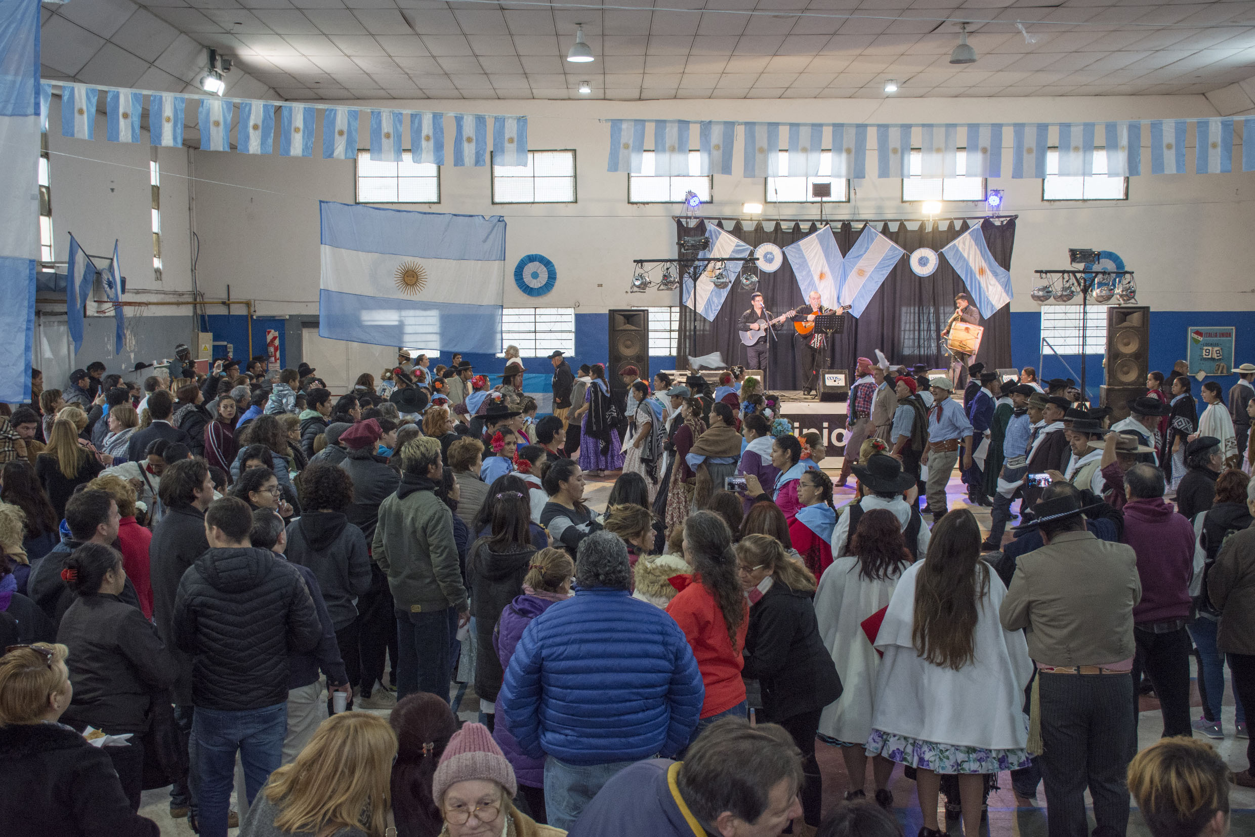 Los Talleres Municipales de Danzas Folklóricas y vecinos bailaron el Pericón Nacional, danza que contó con la participación de mas de 150 bailarines. Luego en el Club Italia Unida se compartió un chocolate caliente con pastelitos mientras se disfrutaba del show de “Ringo Ross Trio”.