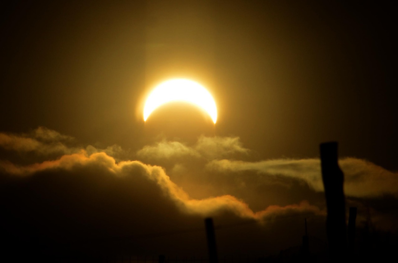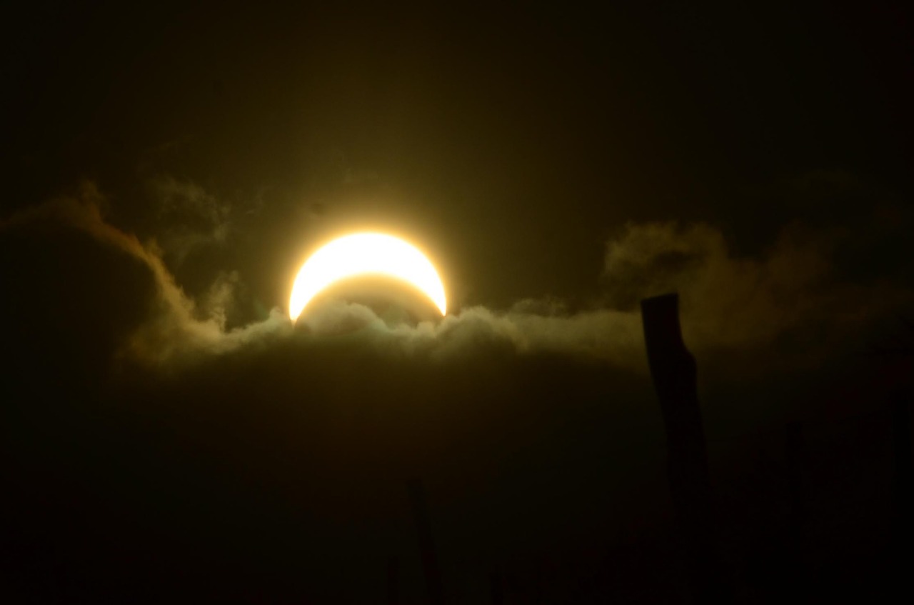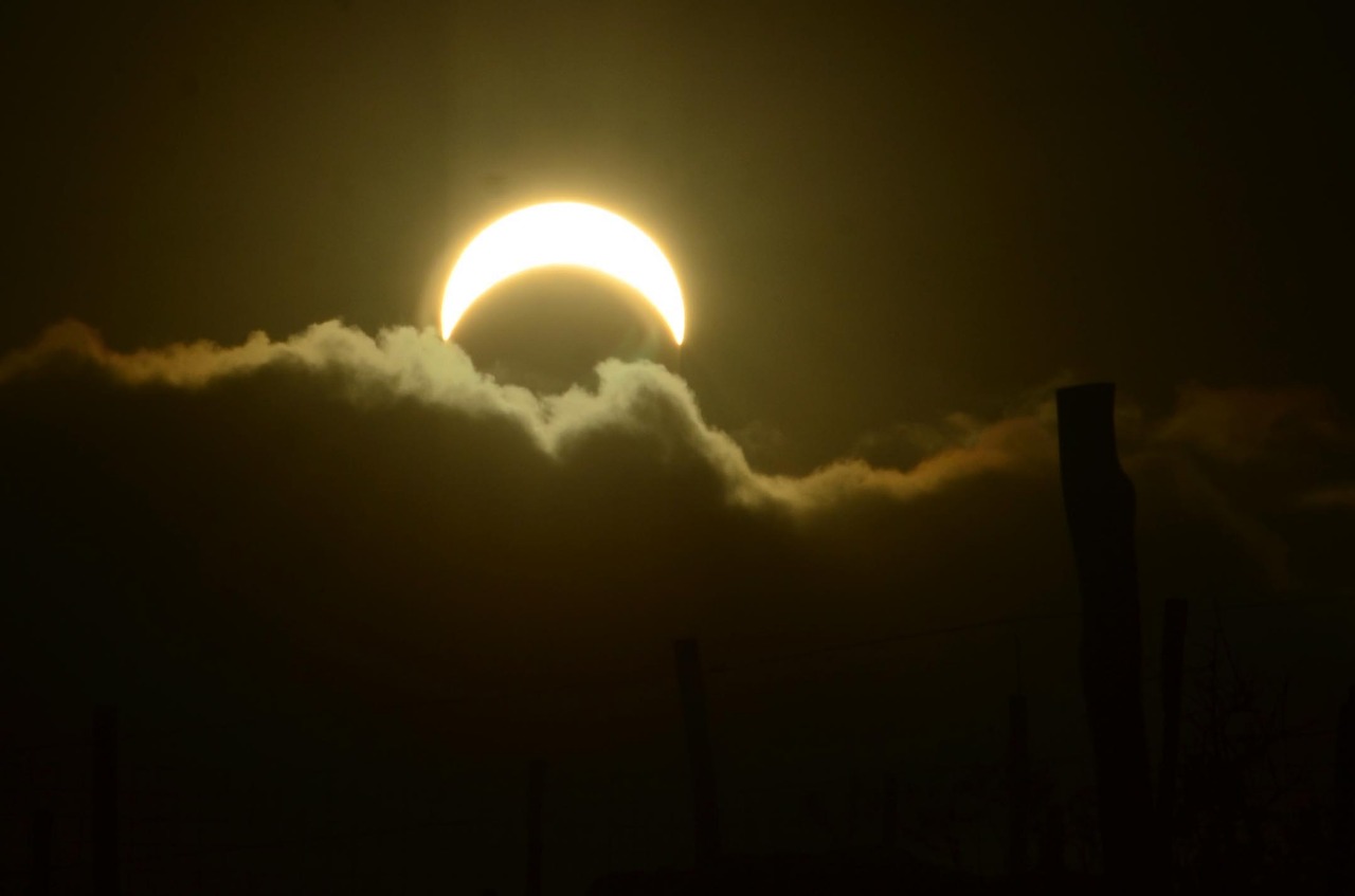 Nuestro fotógrafo Marcelo Ochoa se tomó el tiempo y cuando la nube se distrajo, logró captar algunos momentos de este fenómeno que se produce cuando la Luna se interpone entre la Tierra y el Sol.