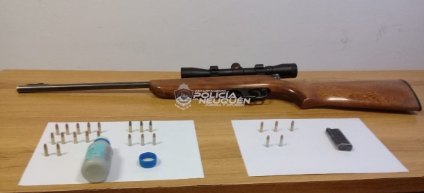Fuentes policiales señalaron que, además, se secuestro de un arma larga, tipo carabina marca Mohely ST700, con mira telescópica, un cargador con cinco proyectiles calibre 22 y un frasco con 18 cartuchos del mismo calibre.