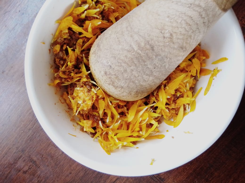 Esta es una receta que me enseñó el cocinero y docente Lisandro Martínez. Una fórmula que viaja desde la provincia de Misiones, con un elemento en común, la flor de la caléndula, que embellece jardines, huertas y mesadas. Al ser una planta con raíces profundas, en las huertas, colabora con la aireación del suelo y a la vez, con una mirada agroecológica, a la flor de la caléndula se la conoce como “plantas trampa”, dado que su color naranja o amarillo resulta un atractivo para los pulgones. Si aparecen estos insectos en la huerta, irán directamente a esta planta, liberando los cultivos. Se puede consumir en té, agüitas saborizadas, en ensaladas y hasta rebozadas. Tiene, además, una cantidad de beneficios para la salud. Aquí, pepas de caléndulas.