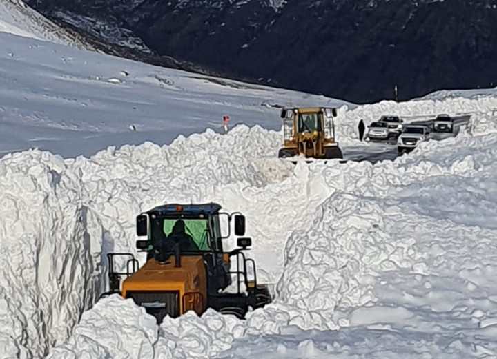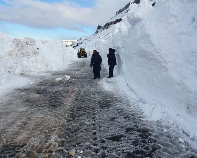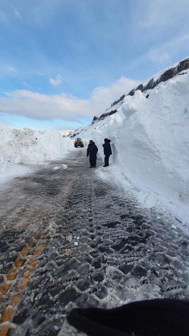 Personal de EPEN y de la dirección Provincial de Vialidad trabajaron arduamente para despejar media calzada de la ruta. Las máquinas retiraron parte de la nieve acumulada, dejando una pared de hielo que superaba el metro de altura.