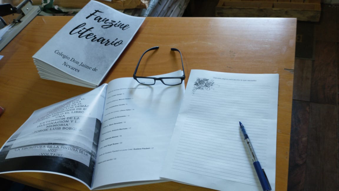 Se produjeron e imprimieron ochenta ejemplares de material didáctico, con la forma de fanzines. Este material, cuidadosamente ilustrado y editado, es una selección de obras literarias (cuentos, microrrelatos, poemas, canciones) de autores nacionales y universales. Los textos constituyen un corpus seleccionado por las y los estudiantes del Profesorado y la Licenciatura, reunido bajo el eje temático “Volver”, ya que se busca retomar estas lecturas en el trabajo áulico de 2021 y llevar a cabo la edición de un libro conformado por un corpus de textos escritos por las y los alumnos del colegio, bajo el título de “Volver. Antología de segundas oportunidades”. Esta última pone de relieve a las y los estudiantes como sujetos de derecho y partícipes y actores de la literatura popular. El material elaborado tiene, pues, el propósito de aportar a la continuidad pedagógica en el actual contexto y puede ser retomado en las clases de Lengua y Literatura, cuando se regrese al espacio áulico, para trabajar con la lectura, la escritura creativa y la reescritura.