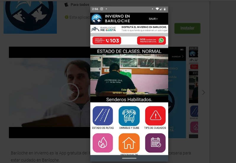 La app que fue diseñada por la comuna, está disponible para descargar de manera gratuita en Google Play Store. Se encuentra bajo la denominación «Bariloche en invierno».
