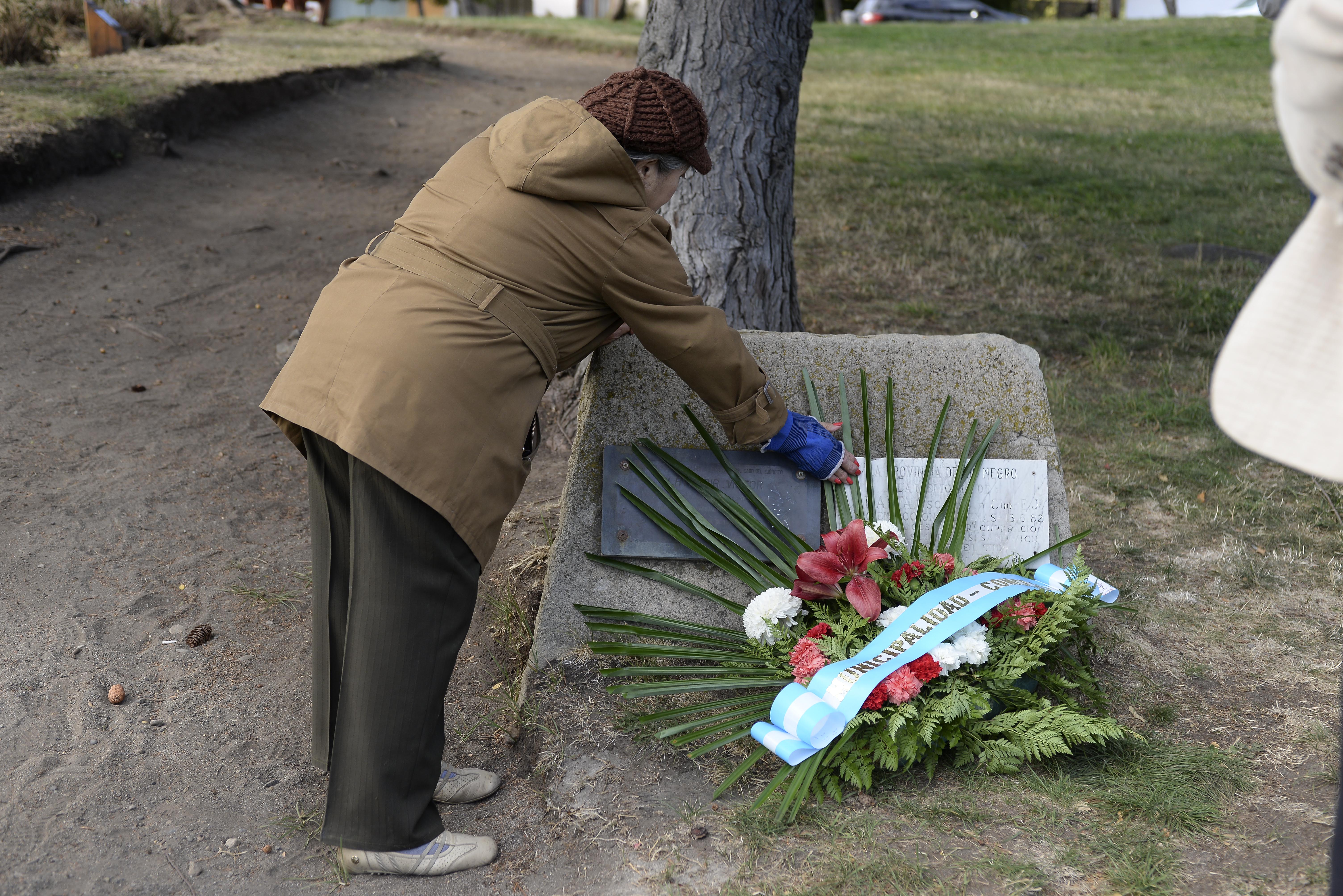 Teodora Mariqueo, la madre del soldado Víctor Olavarría, también se sumó a los actos. El Equipo de Antropología Forense confirmó en enero del 2018 que Olavarría y Oscar Labalta fueron identificados entre las 123 tumbas que estaban en el cementerio de Darwin en Malvinas.
