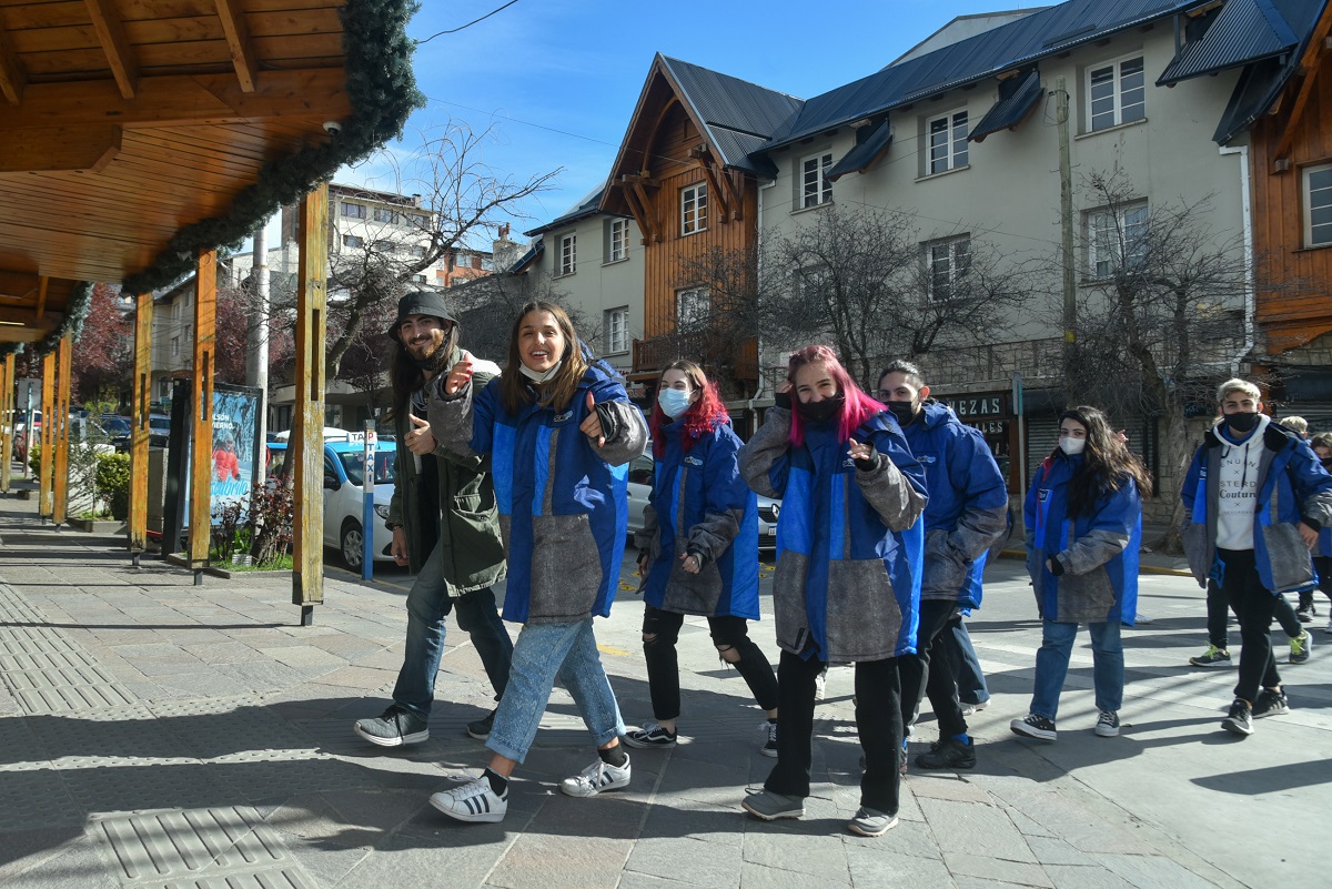 La presencia de los estudiantes en las calles de Bariloche es un clásico. Con sus cantos y sus atuendos con las marcas de las empresas de viajes, decoran la vida cotidiana.