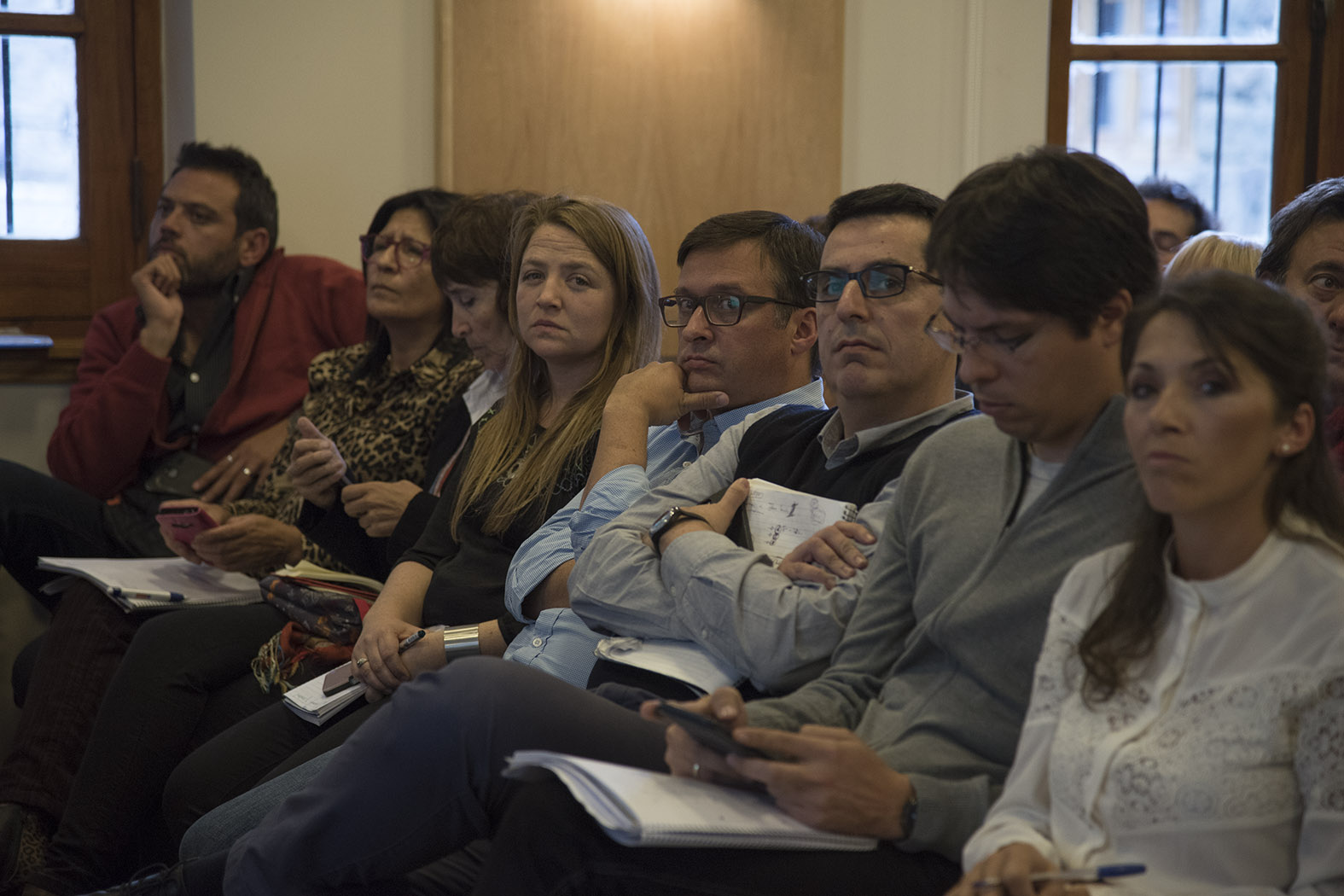 La audiencia es presidida por el concejal Daniel González, junto a su par Andrés Martínez Infante y participan la mayoría de los concejales en la sala. No está presente el intendente Gustavo Gennuso quien se encuentra fuera de la ciudad.