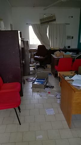 El portero, Matías Briones fue el primero en llegar al club esta mañana, cuando observó las puertas violentadas y los espacios revueltos y con elementos tirados en el piso.