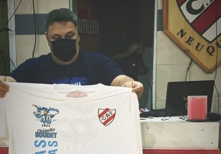 Independiente le obsequió a Chiqui Boudet una de las sudaderas que el club vestirá en la previa de los partidos del fin de semana. El conjunto de Marcelo Remolina, que anoche le ganó a Petrolero por la Liga Federal de básquet, visitará a Zorros en San Martín de los Andes en dos cotejos consecutivos a jugarse el 2 y 3 de abril.