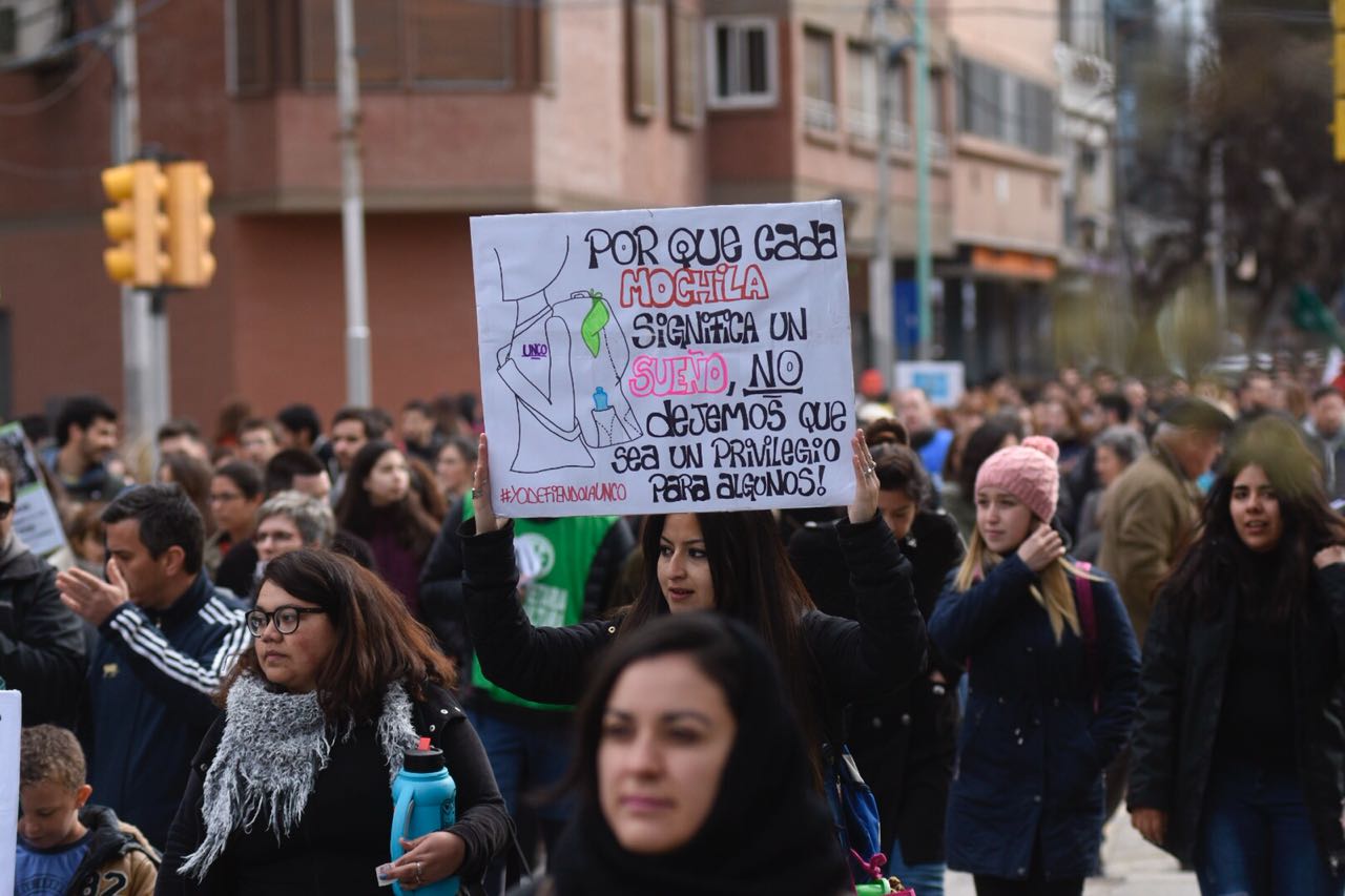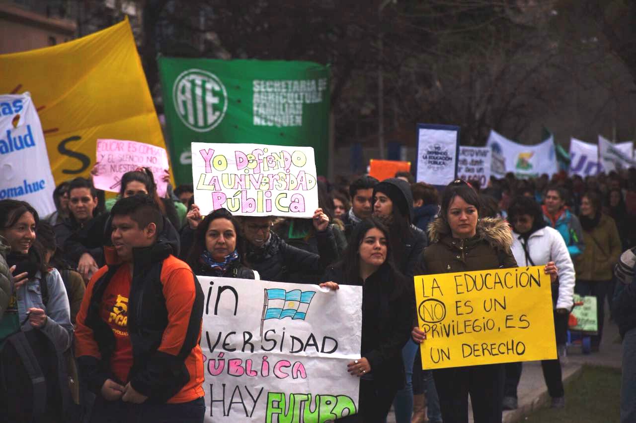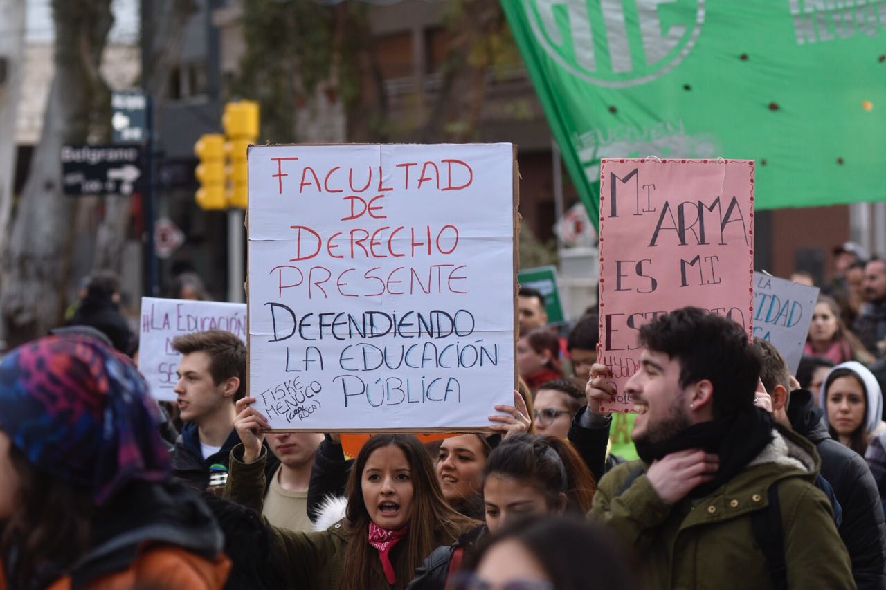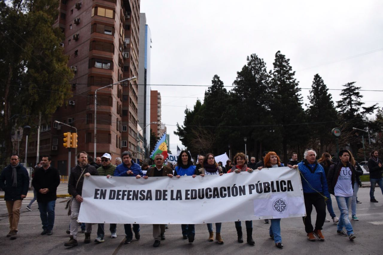 La marcha en defensa de la educación pública recorrió Neuquén. El rector de la UNC aseguró que, por mes, se arrastra una deuda de un millón de pesos. Ayer fracasó la paritaria docente y se acentúa la crisis.