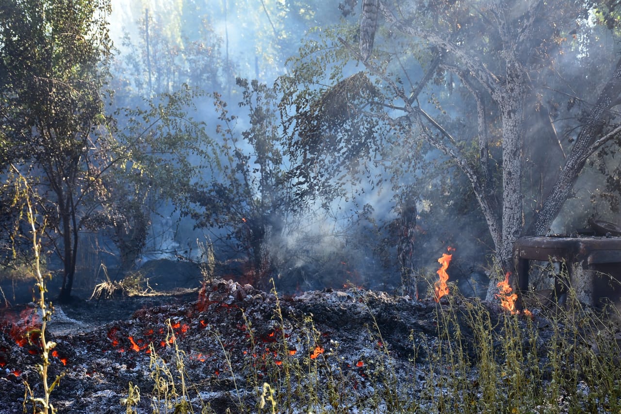 Según informaron vecinos, el incendio comenzó cuando un hombre estaba quemando basura y explotaron unos aerosoles que dieron contra contra los frutales.