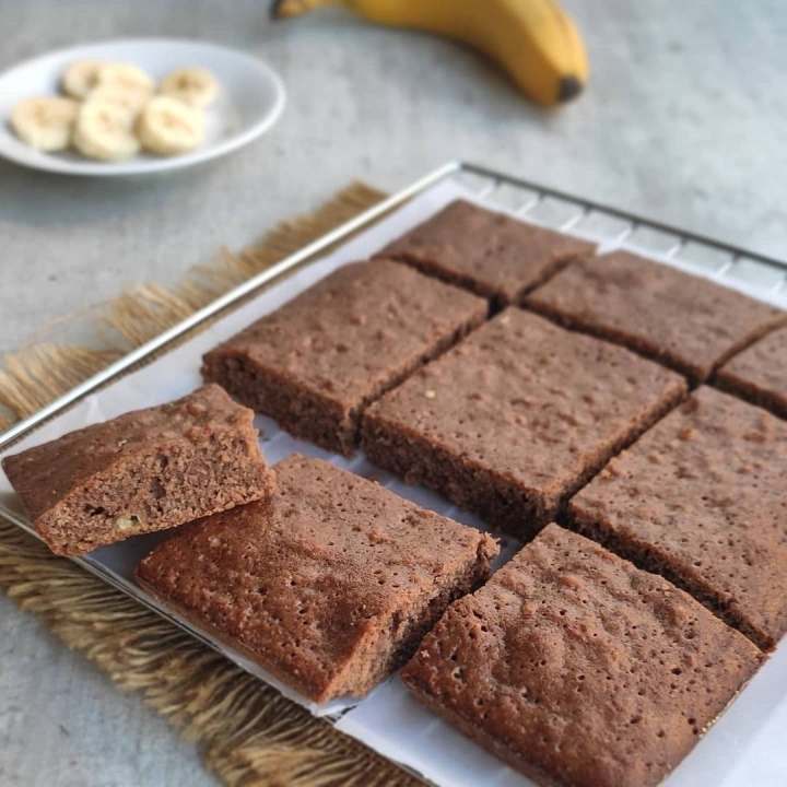En un bol pisar la banana hasta que se forme un puré. Agregar el extracto de vainilla, los huevos, el azúcar, el aceite y mezclar. No hace falta batir, si mezclar. Agregar el cacao amargo y la harina junto con la pizca de polvo de hornear. Integrar todo y verter la preparación en un molde. Llevar a horno medio (170° C) por aproximadamente 20 minutos.